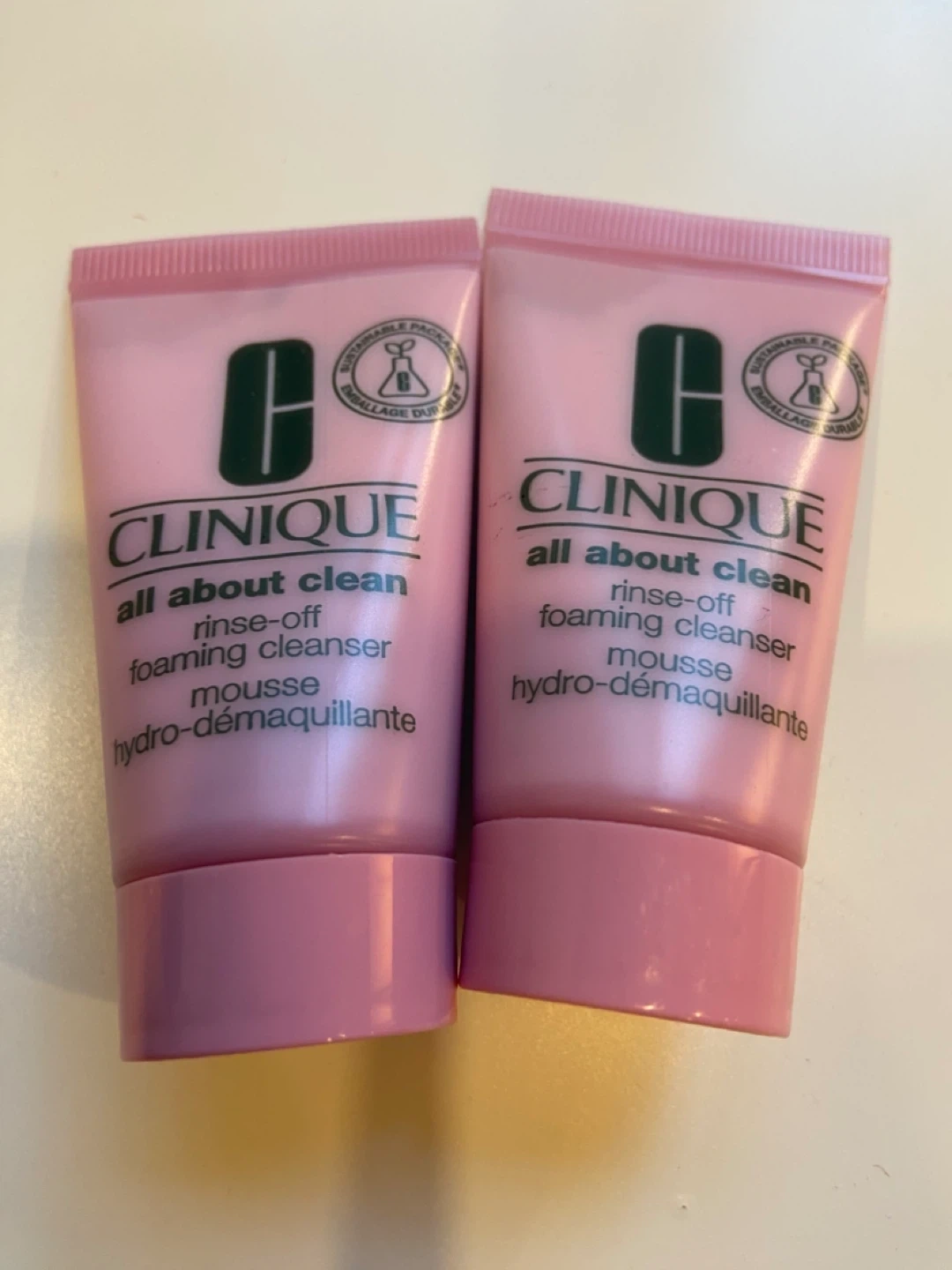 Selling two tubes of Clinique's All About Clean Rinse-Off Foaming Cleanser! This mousse cleanser is perfect for a gentle yet effective cleanse. It's a great way to keep your skin feeling fresh and clean