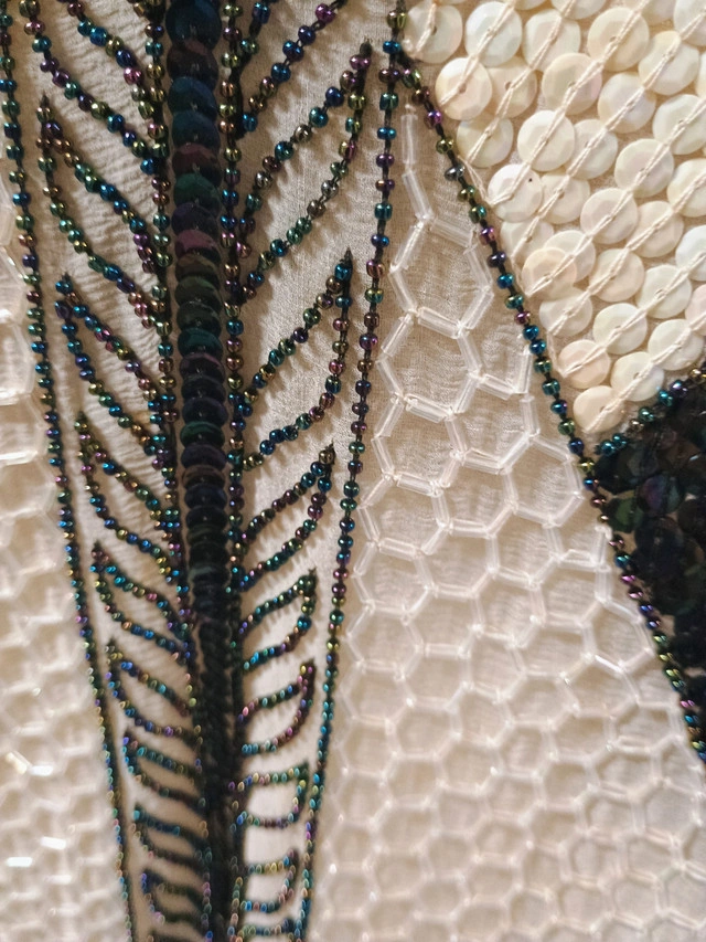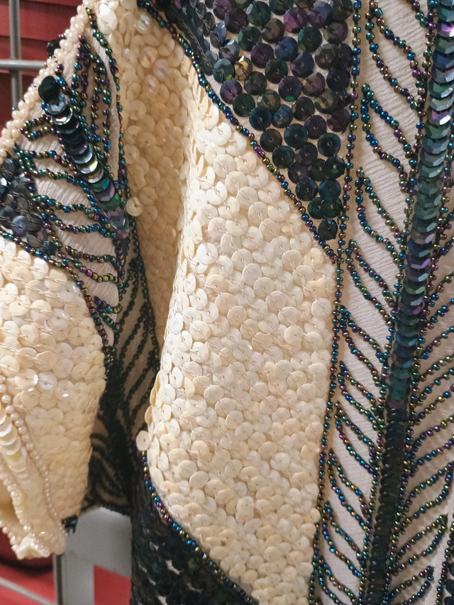 15The beadwork on this makes me drool. About a size 6, no zipper.
