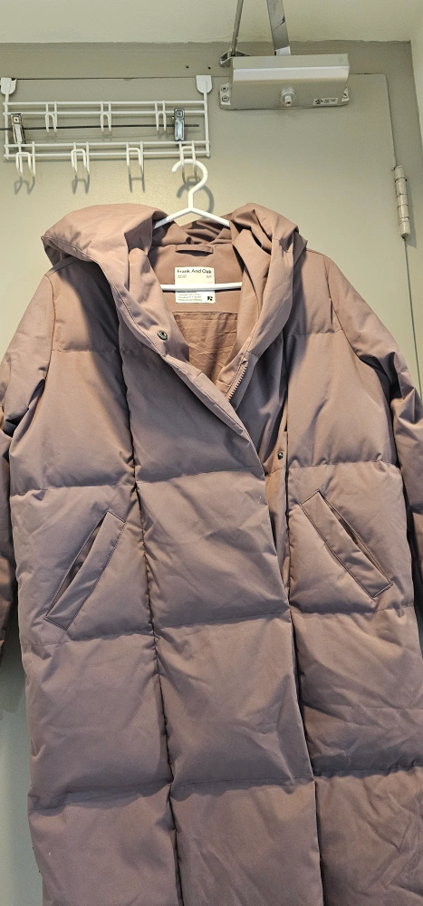 1000+Cozy Frank And Oak puffer coat up for grabs! It's a stylish and warm outerwear piece perfect for the Canadian weather. The size is S/P. It's in great condition and ready to keep you snug this winter!