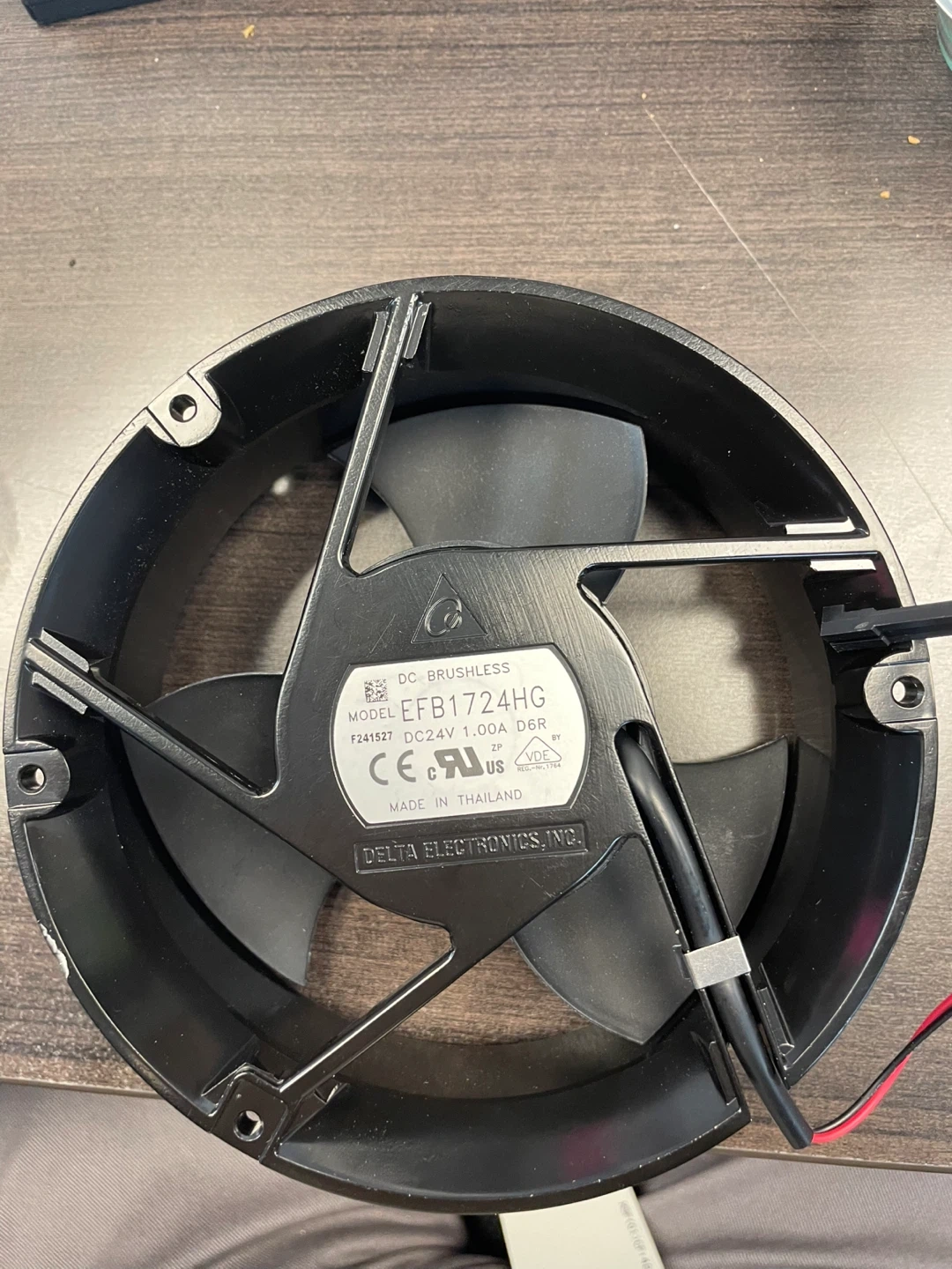 Selling a Delta Electronics DC brushless fan, model EFB1724HG. It operates at DC24V 1.00A 06R. It is made in Thailand Pickup at 6565 Hwy 7 Tim Hortens