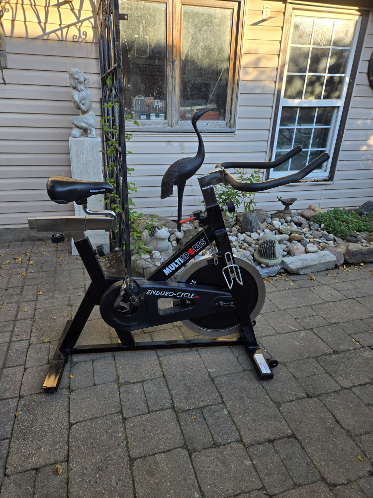 Selling a MultiSports Enduro-Cycle 500 exercise bike. It's in good condition and ready for a new home gym! This sturdy bike is perfect for getting a great workout at home. It has adjustable resistance so you can customize your workout. Heavy duty bike