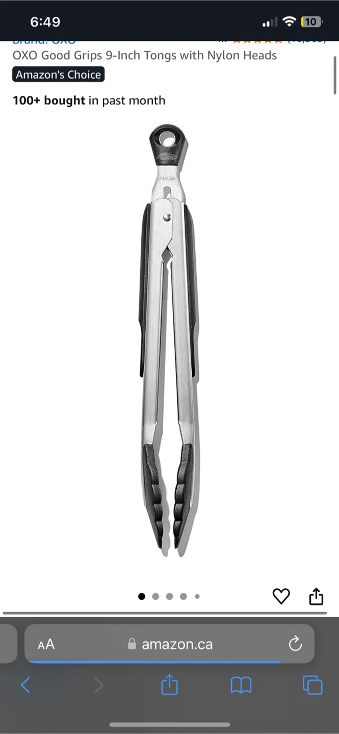 Selling a pair of OXO Good Grips 9-inch tongs with nylon heads! These tongs are stainless steel and have comfortable, non-slip grips. Perfect for cooking and serving, and the nylon heads are safe for non-stick cookware