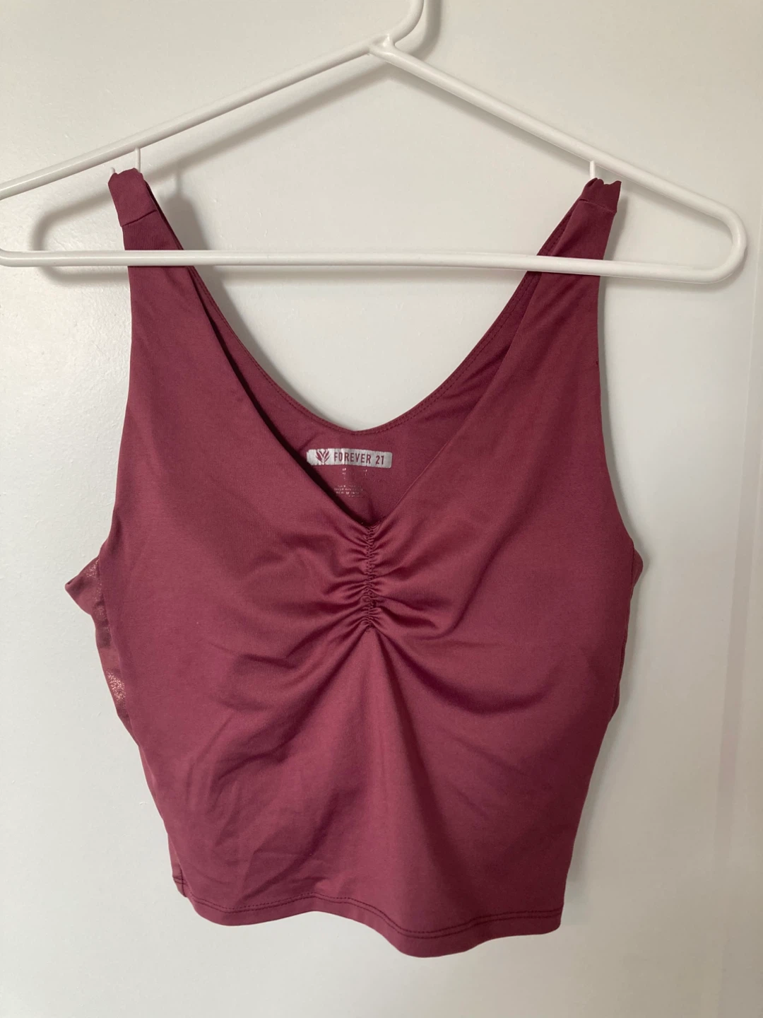 A cute burgundy crop top from Forever 21! It's in great condition and ready for a new home. Perfect for layering or wearing on its own during warmer weather