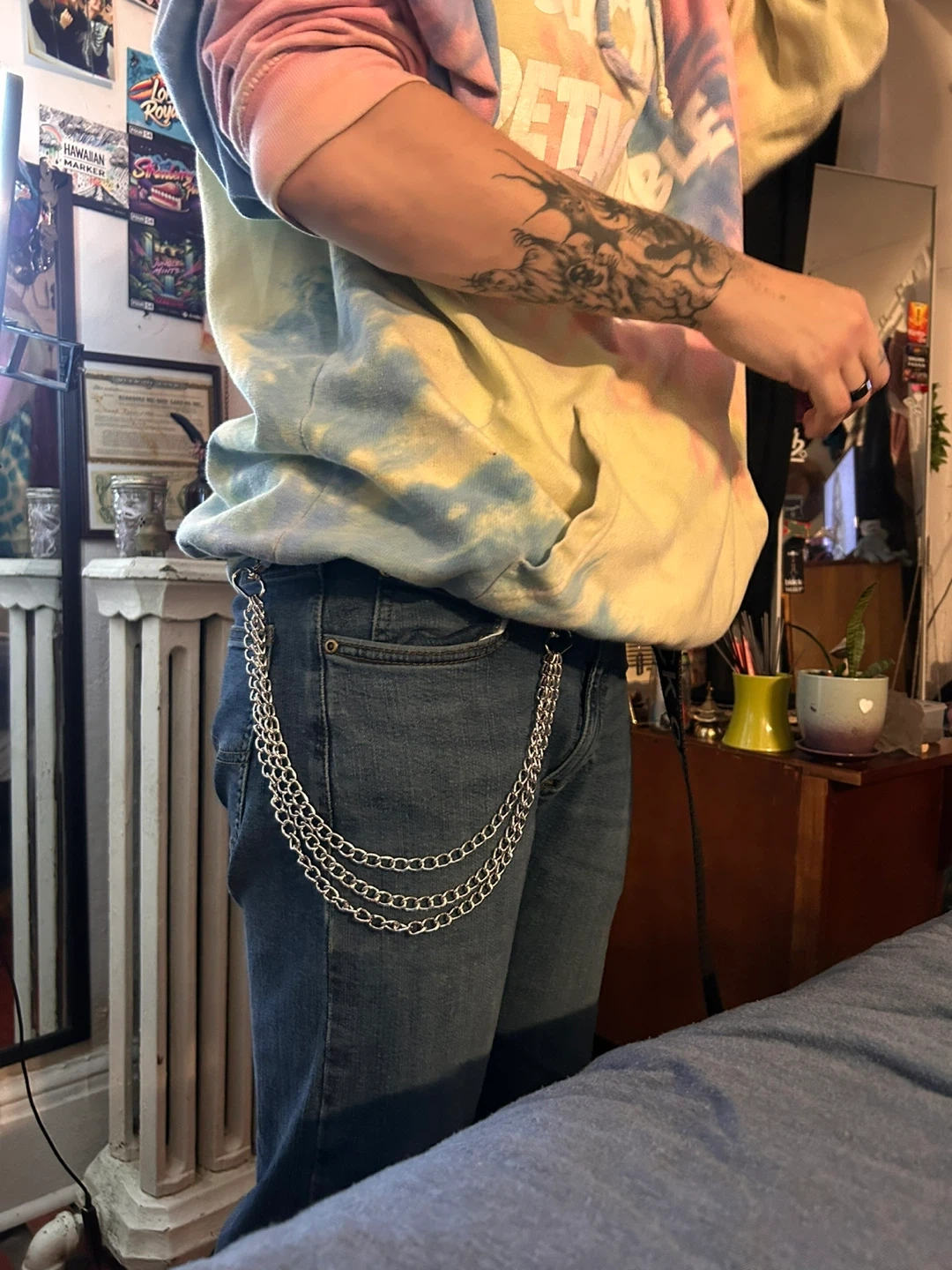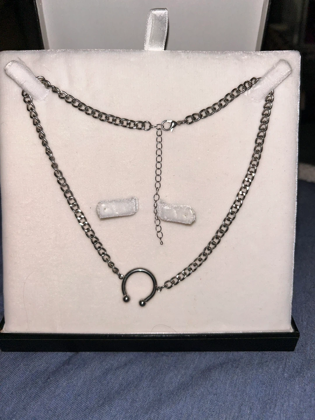 Selling a stylish silver chain set! It includes a necklace and a belt chain, perfect for adding some edge to any outfit. Great for accessorizing!