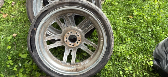 Great Rims for re-dipping or refinishing project or a wrap 20 inch rockstar, rinse deep dish chrome One rim needs repairing has a bend in it and the tire is slashed Tire size (diameter): 20 in.