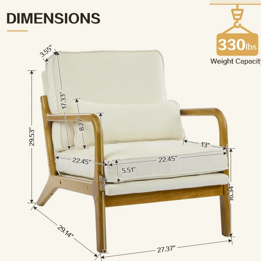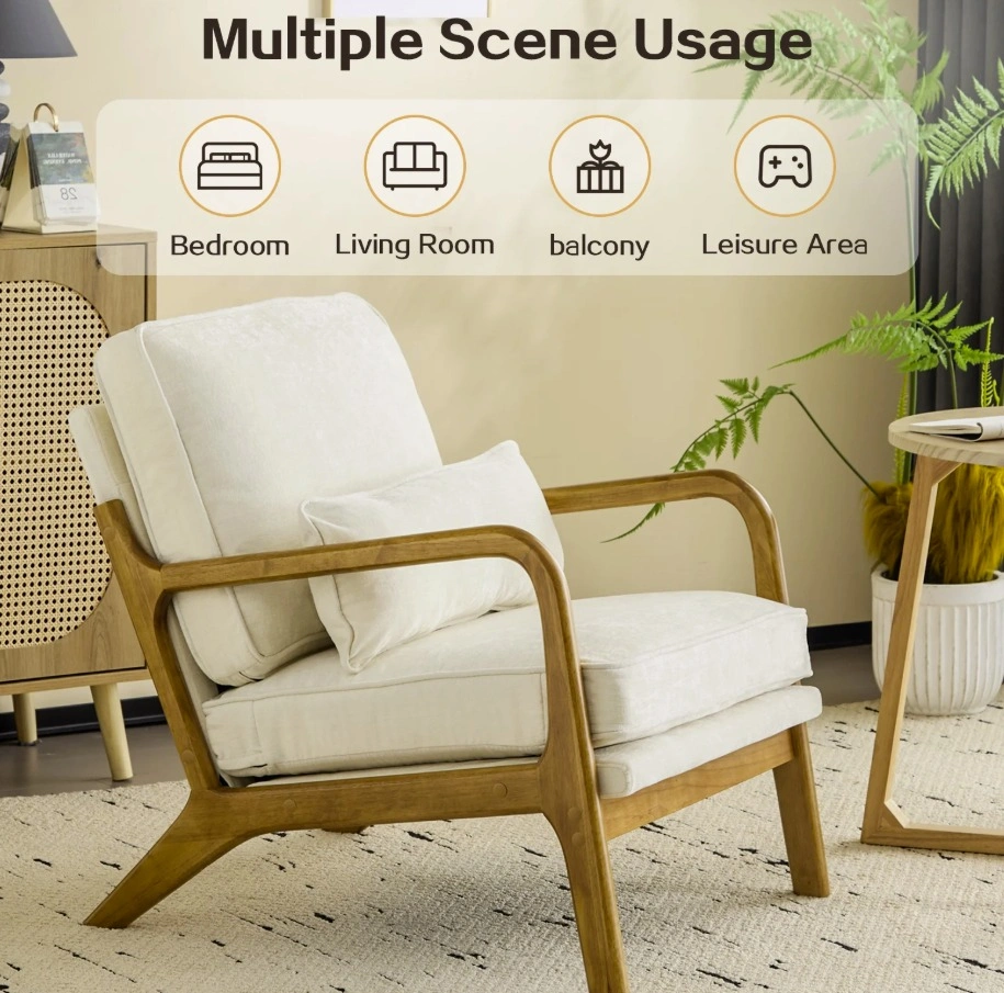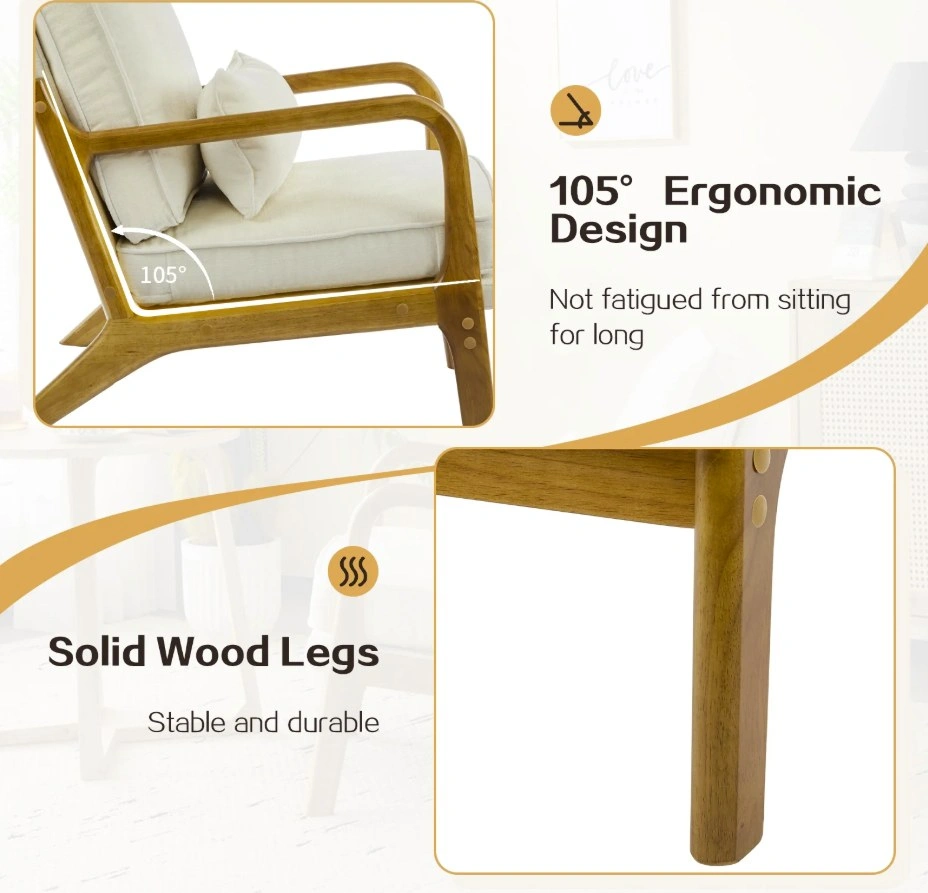Modern Accent Chair, Mid-Century Solid Wood Arm Chair...