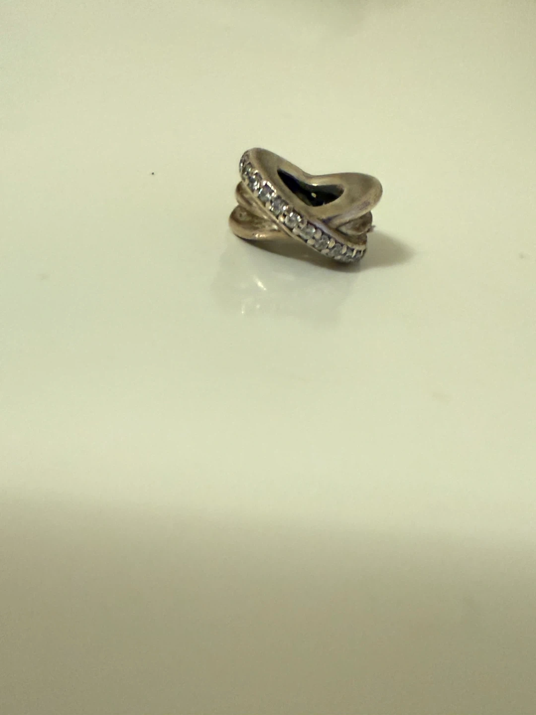 Selling a Pandora intertwined ring. It's a beautiful piece that's perfect for adding a touch of elegance to any outfit. The ring has a unique design and is in good condition. It's a size 7.