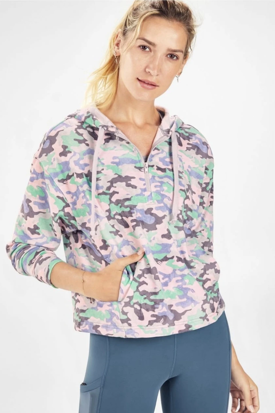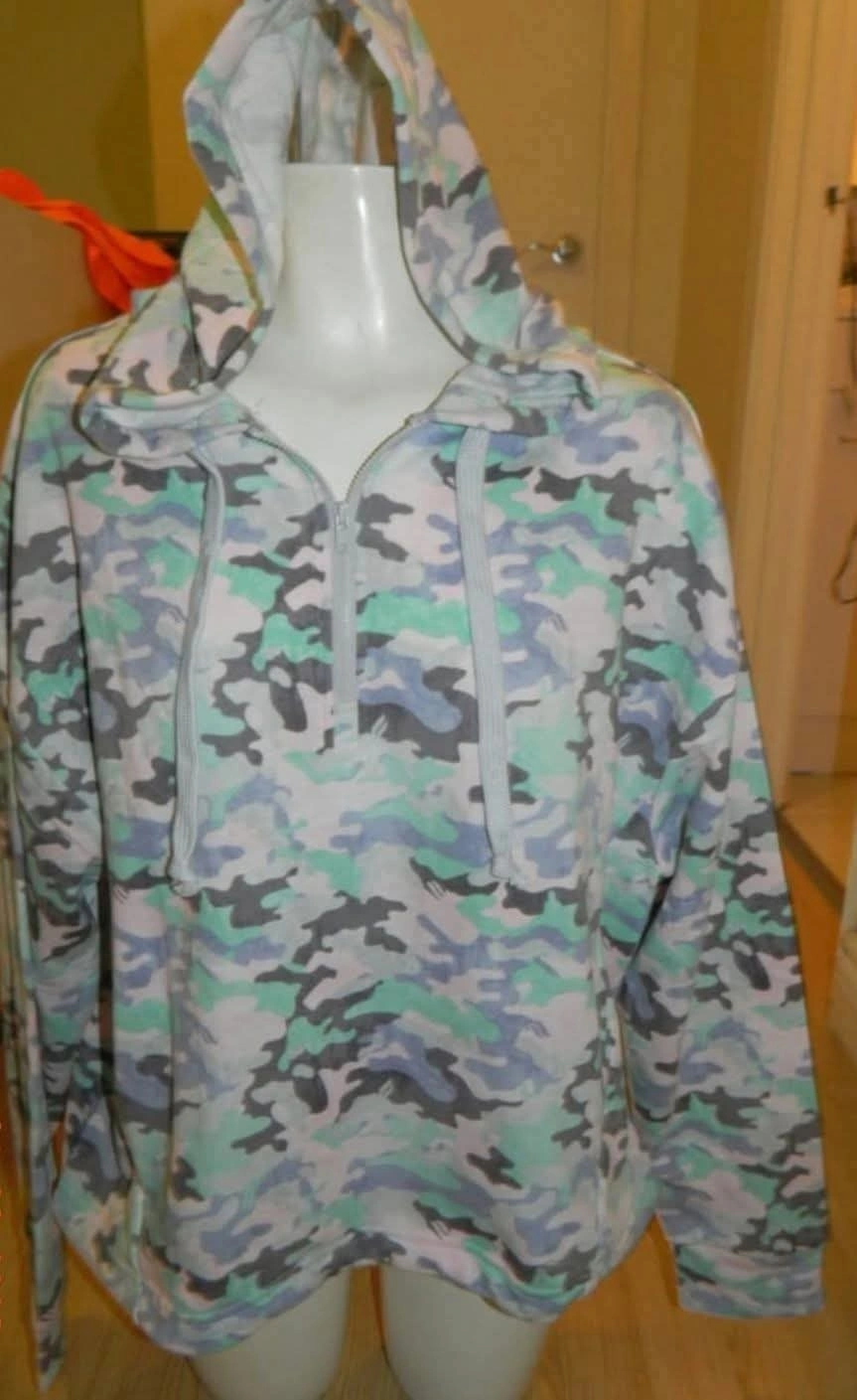 LIKE NEW FABLETICS Camo Hoodie - Blue, Green, Grey..SIZE M