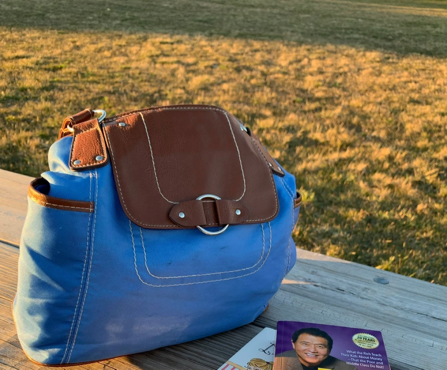 Selling a cute blue and brown backpack! It's in good condition and ready for a new home. Perfect for carrying your essentials around town or for a day trip. The colours are really nice!