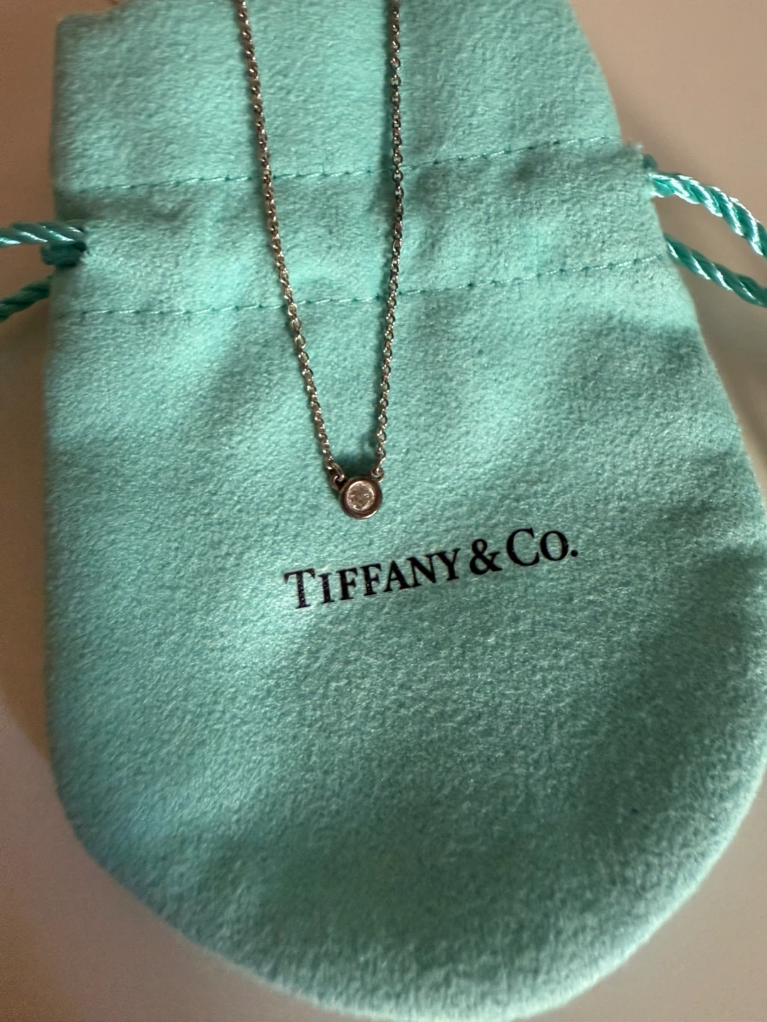 Selling a beautiful Tiffany & Co. diamond pendant necklace! It's in great condition and comes with the original pouch. A classic and elegant piece to add to your collection