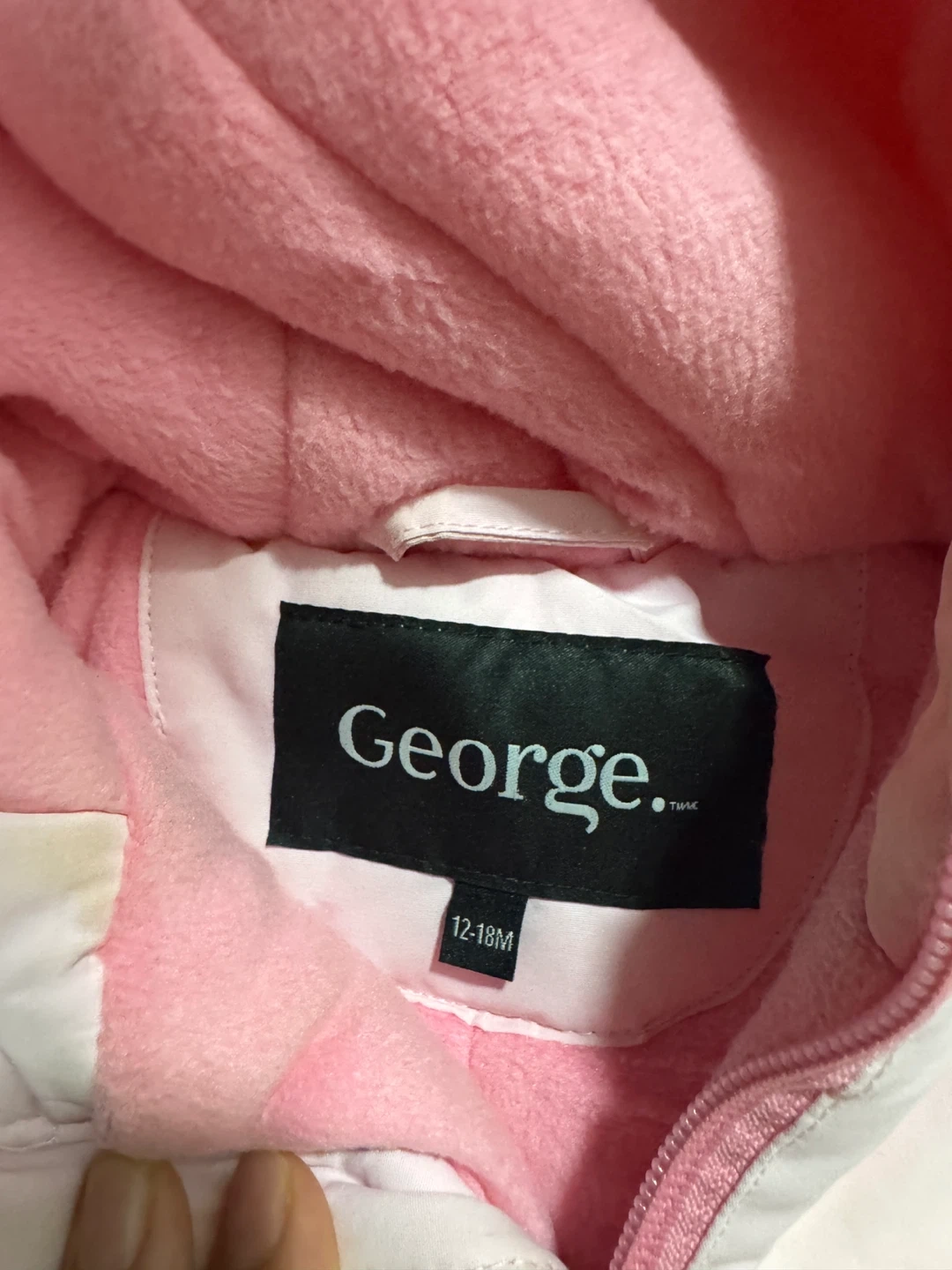 105Keep your little one warm and cozy with this adorable pink snowsuit from George! It's sized for 12-18 month olds and is perfect for those chilly Canadian winters