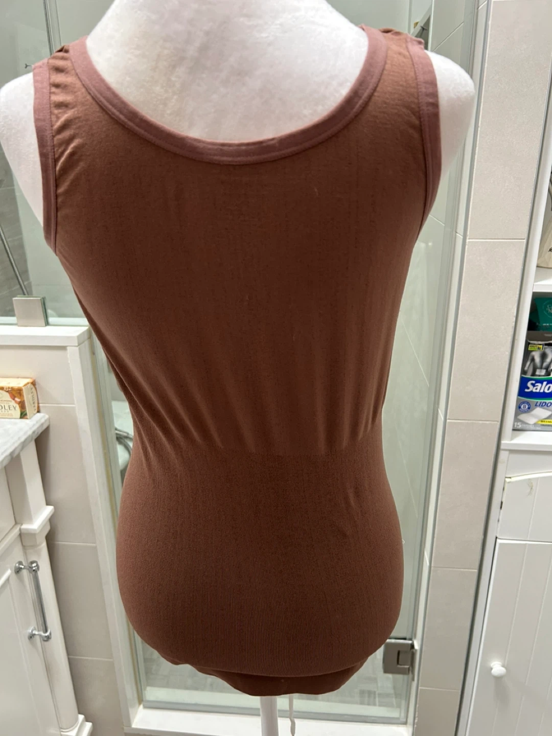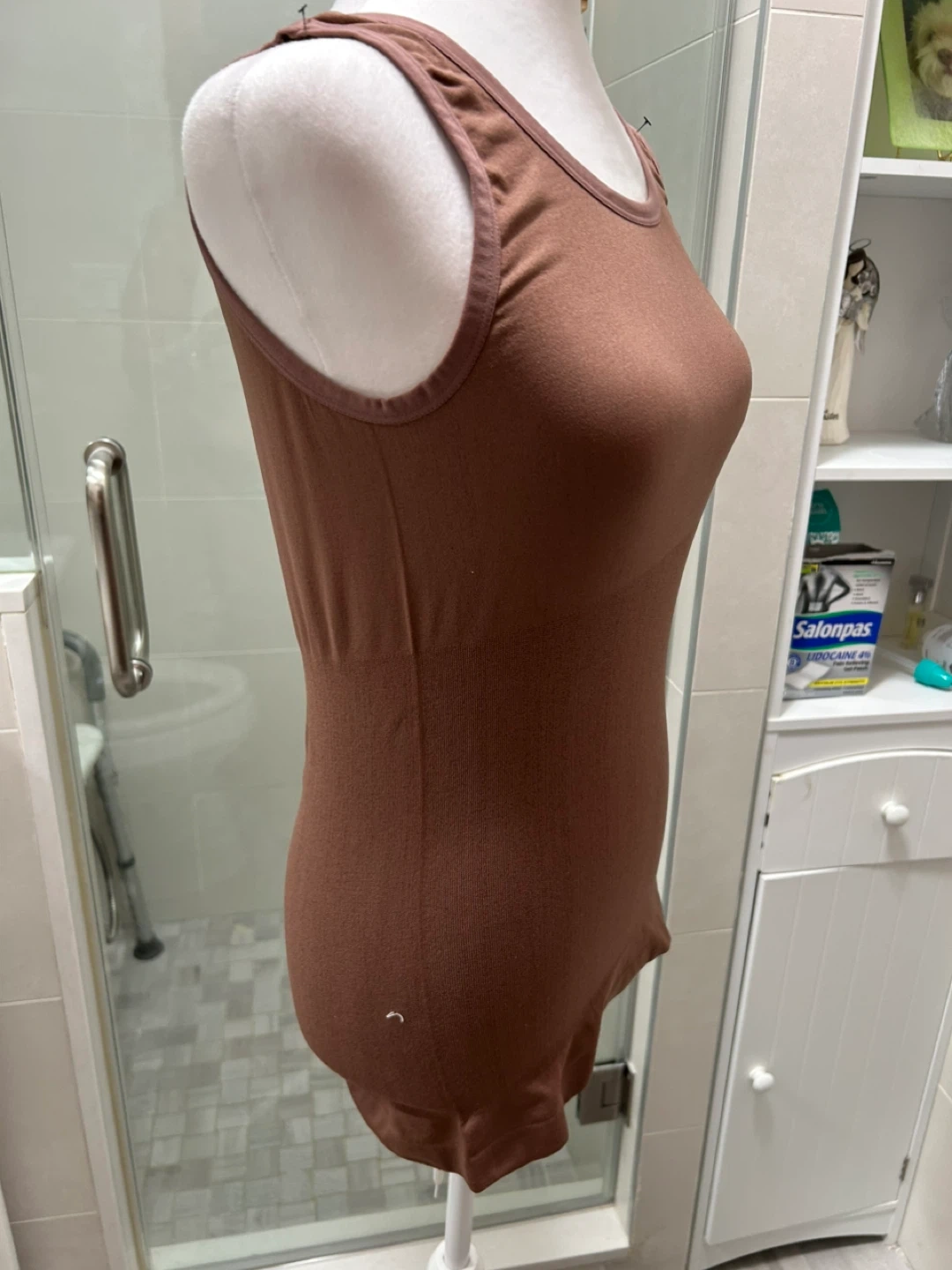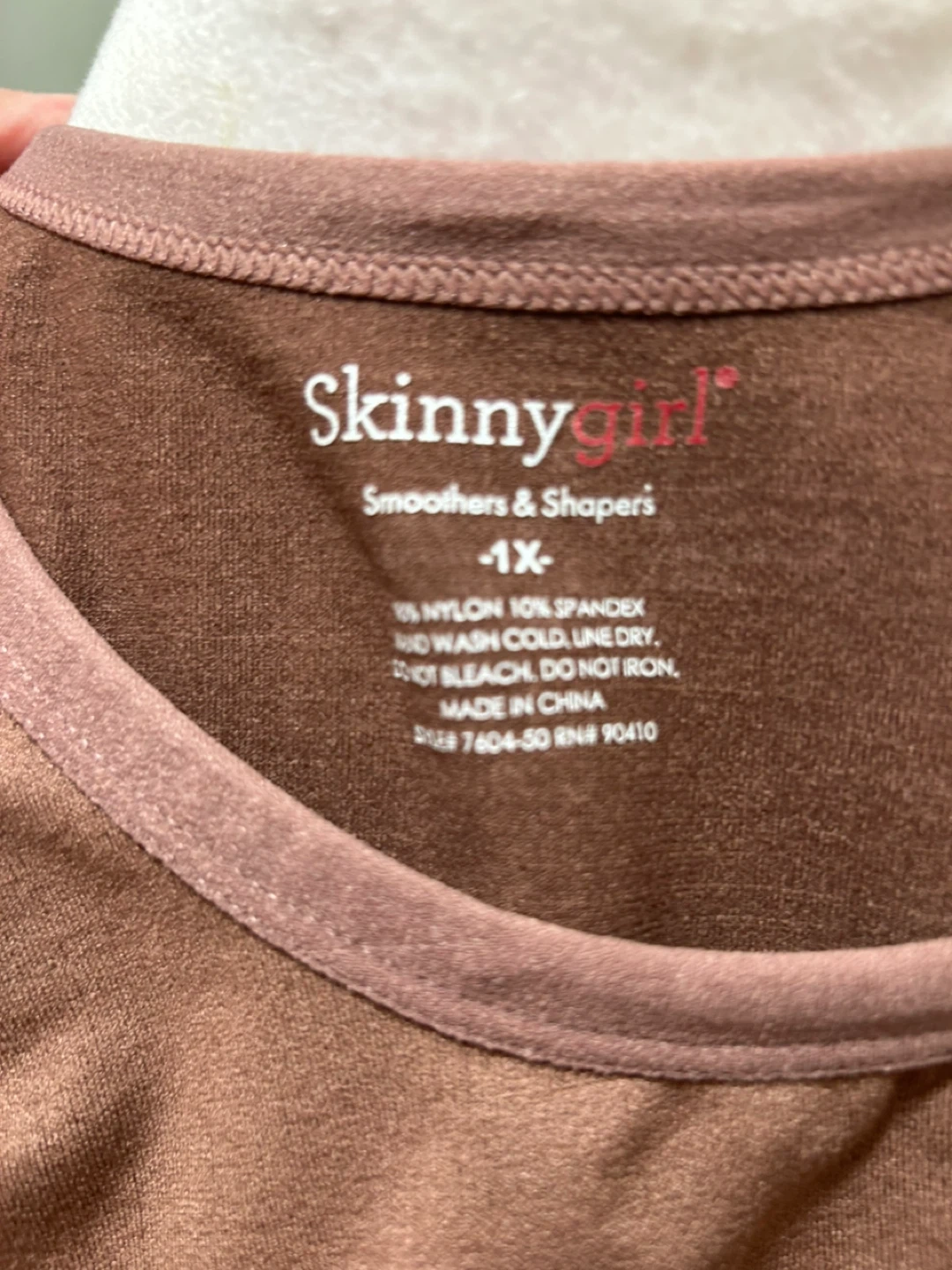 Brand New - Selling a Skinnygirl shapewear bodysuit in size 1X. It's a brown color, perfect for layering or wearing on its own. The material is a blend of nylon and spandex, offering a comfortable and smoothing fit!