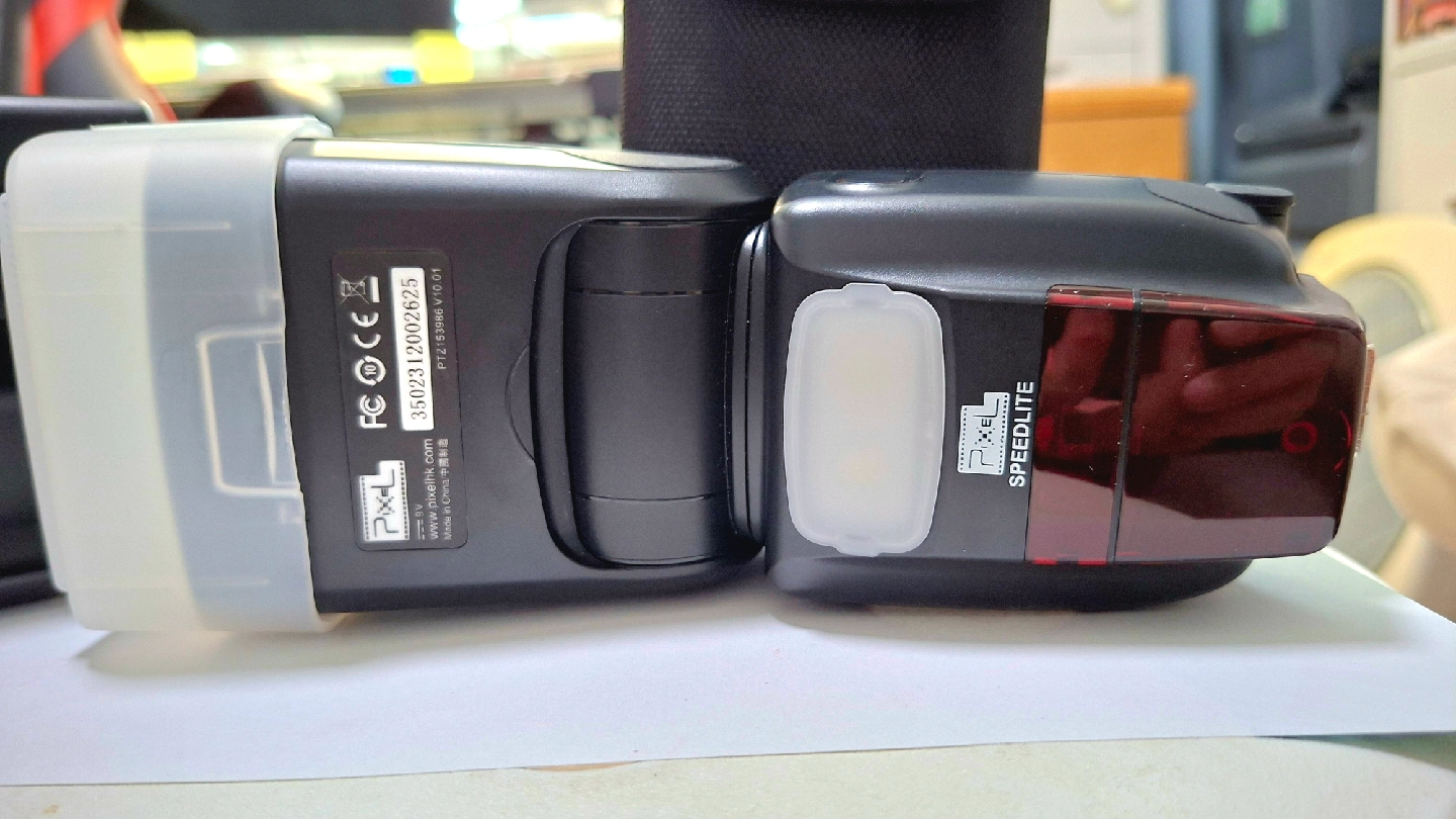 Selling a Pixel X900N Speedlite flash, compatible with Nikon cameras. It comes with its original pouch and included a battery and a charger.