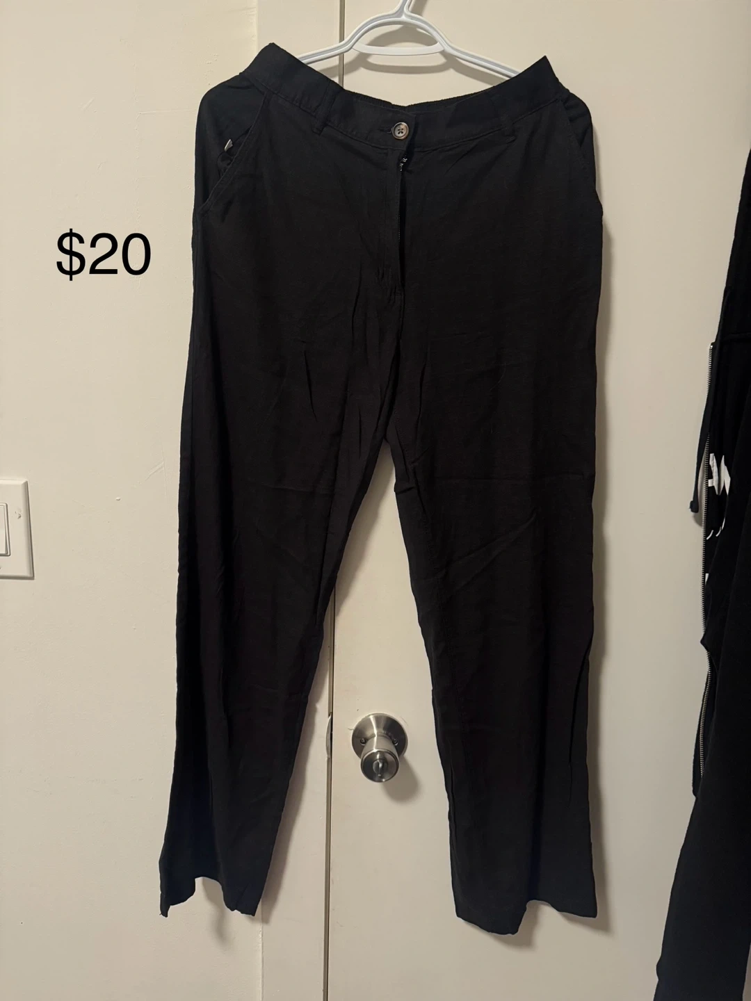 Selling a pair of H&M black pants in size small! They're made from a linen blend, perfect for staying cool and comfy. Originally bought for $39.99 CAD. A great addition to any wardrobe!