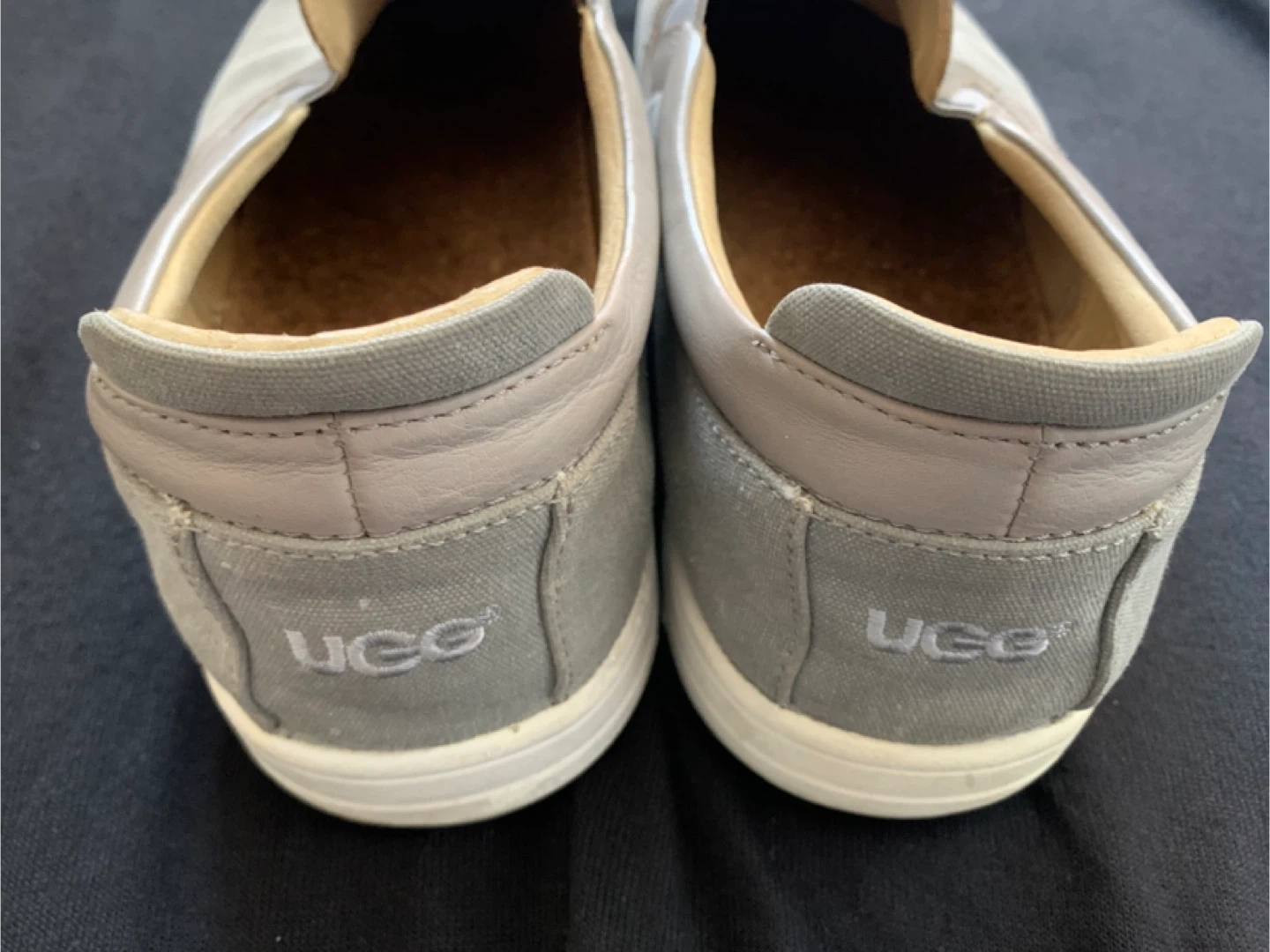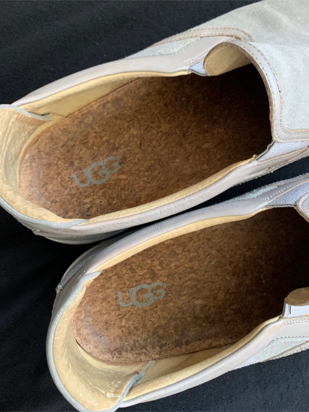 Neutral grey colour. Cork foot bed. I have had them for years and worn for short periods of time occasionally. Have done my best to showcase the current condition they are in. Nowhere near perfect if that’s what you are in the market for.