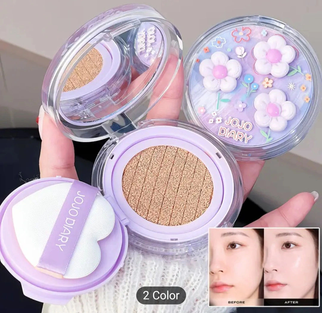 Selling a JOJO DIARY cushion foundation. It comes with a cute applicator and a mirror inside the compact. Perfect for a quick touch-up on the go!