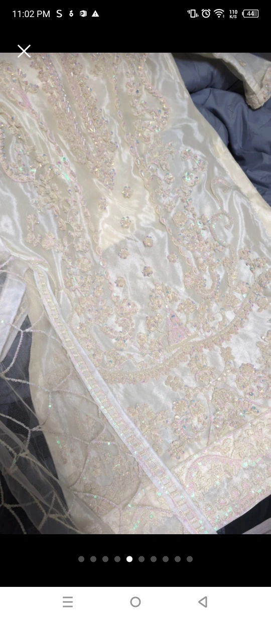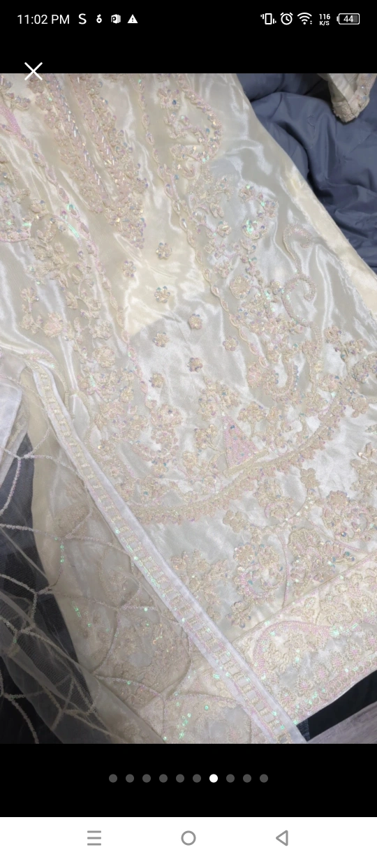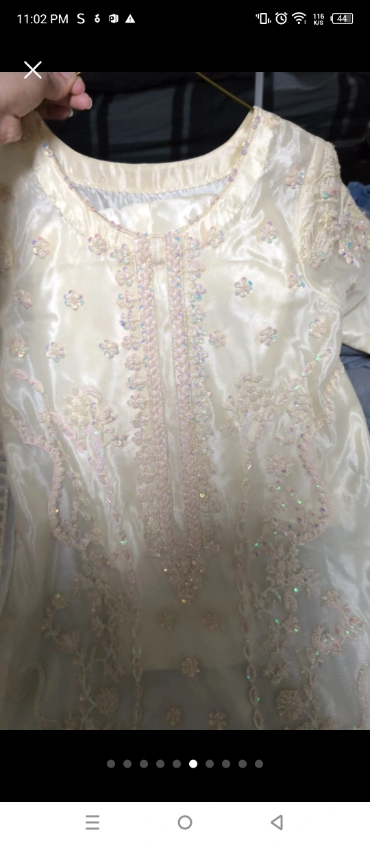 35Beautiful salwar kameez suit with intricate embellishments. Perfect for special occasions or cultural events. The fabric has a lovely sheen and the detailing is exquisite. It's in great condition and ready for a new home!