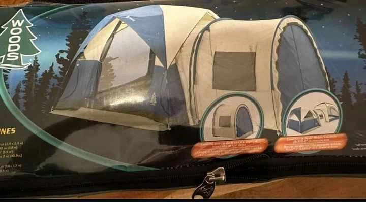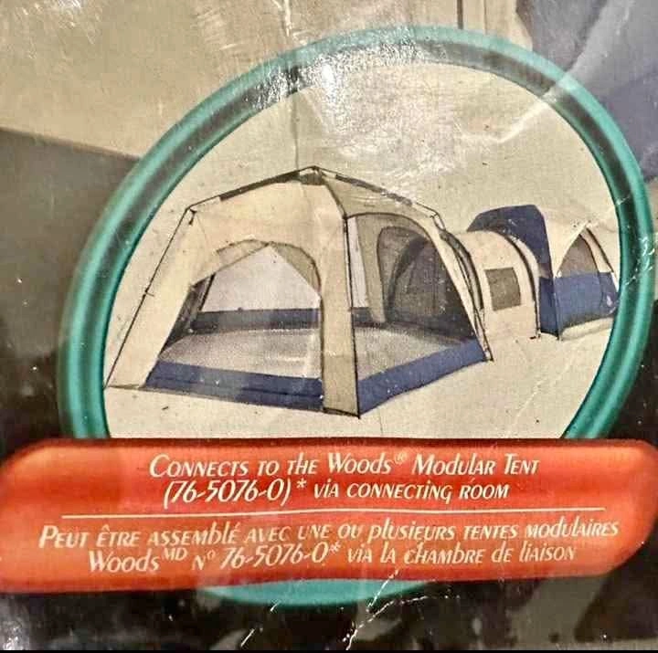 Includes tent, screen house, and two Modular rooms. Woods Modular system can be connected together or used separately. Amazing amount of space.