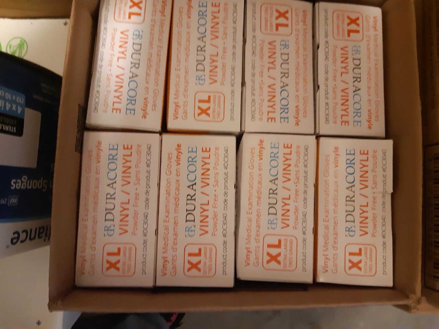 Selling a variety of vinyl exam gloves. There are boxes of Cardinal Health and Alliance Duracore brands. Sizes XL. Great for various uses! $7 each or $5 each bundle price
