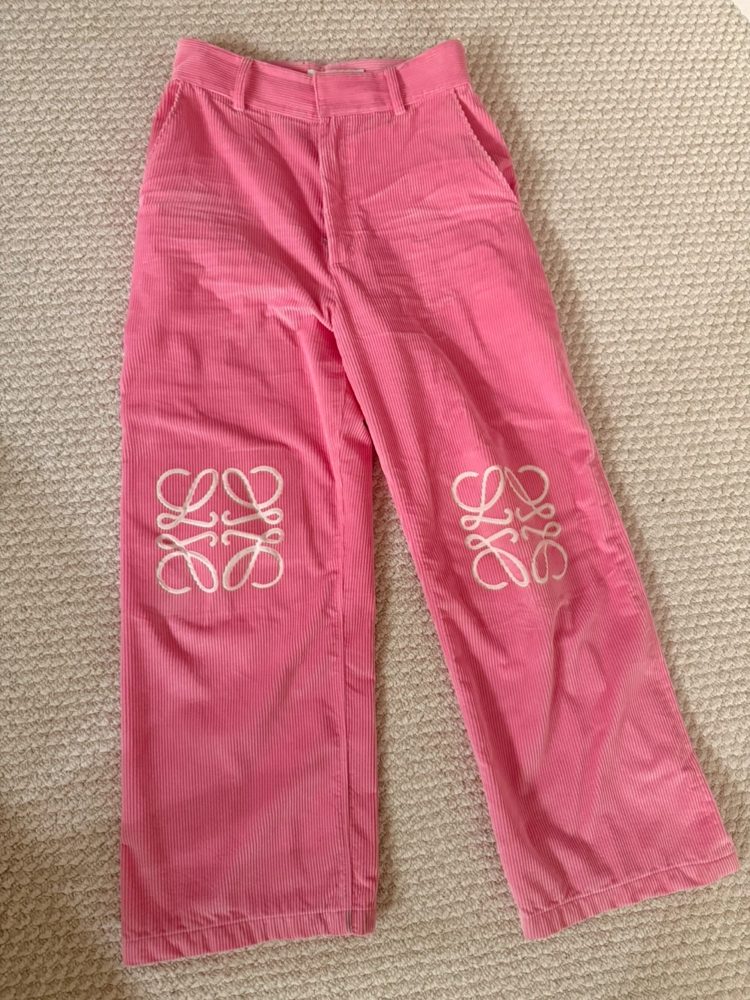 Authentic Loewe anagram pink corduroy pants These are a size 34 EU but fit size US2/4 with room to spare (I am a true size US4 or waist size 25) In excellent condition with no stains, tears, etc No lowball offers :)