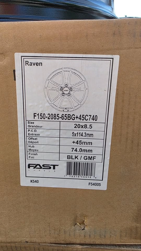 Selling a set of four Brand new 20 inch Fast alloy rims for $850. The Bolt pattern is 5x114.3 . fit some of Mazda 3, mazda 6, cx5, cx7, cx9, Mazda cx3, Honda civic, honda accord, CRV, mazda 3, mazda 5, mazda 6. nissan sentra, Altima, maxima, Toyota Camry, rav4, Hyundai elantra, Tucson, , kia, Lexus, Acura ilx, tlx,RDX, Mitsubishi, ford explorer, Lexus is300, Infiniti G37, q50,q60 or other cars. for reference only, the buyer verifies your own vehicle fitment please.