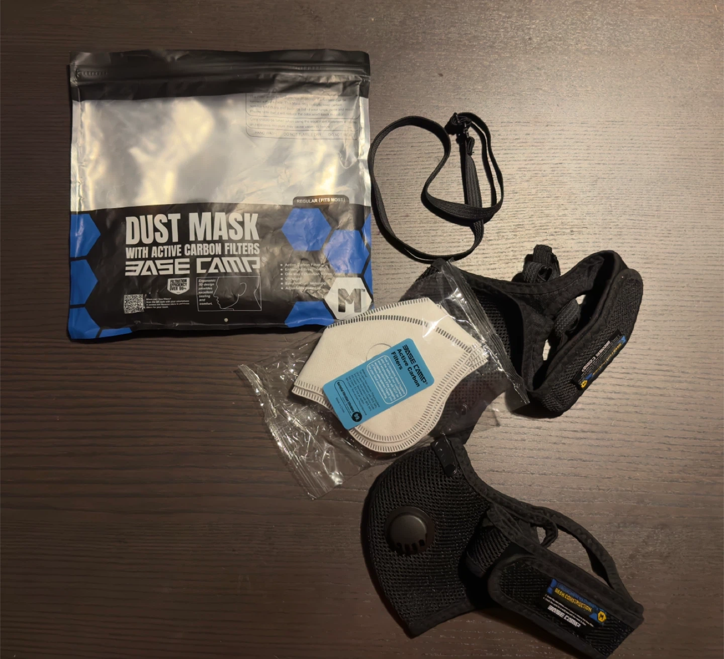 Selling a Base Camp dust mask with active carbon filters in size M. It comes with multiple filters, head strap and valve covers. This mask features active carbon filtration, enhanced breathability, and an adjustable nose clip. Perfect for anyone needing reliable protection!