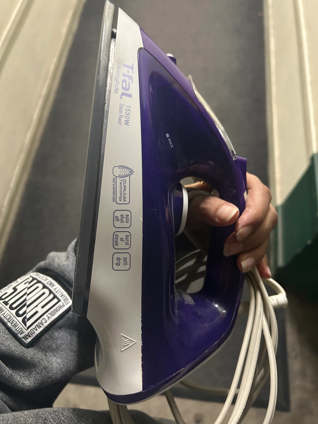 Selling a T-fal Fastglide steam iron! It has a Durilium technology soleplate for fast and effortless ironing. It also features auto shut off, burst of steam, and anti-drip functions. Great for getting those wrinkles out!