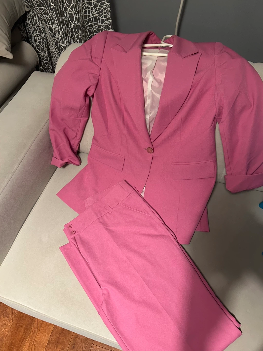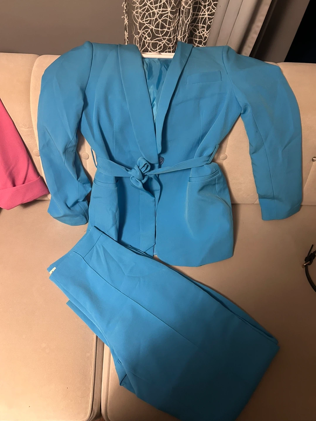 Pink and Blue Blazer and Pants Suit Set