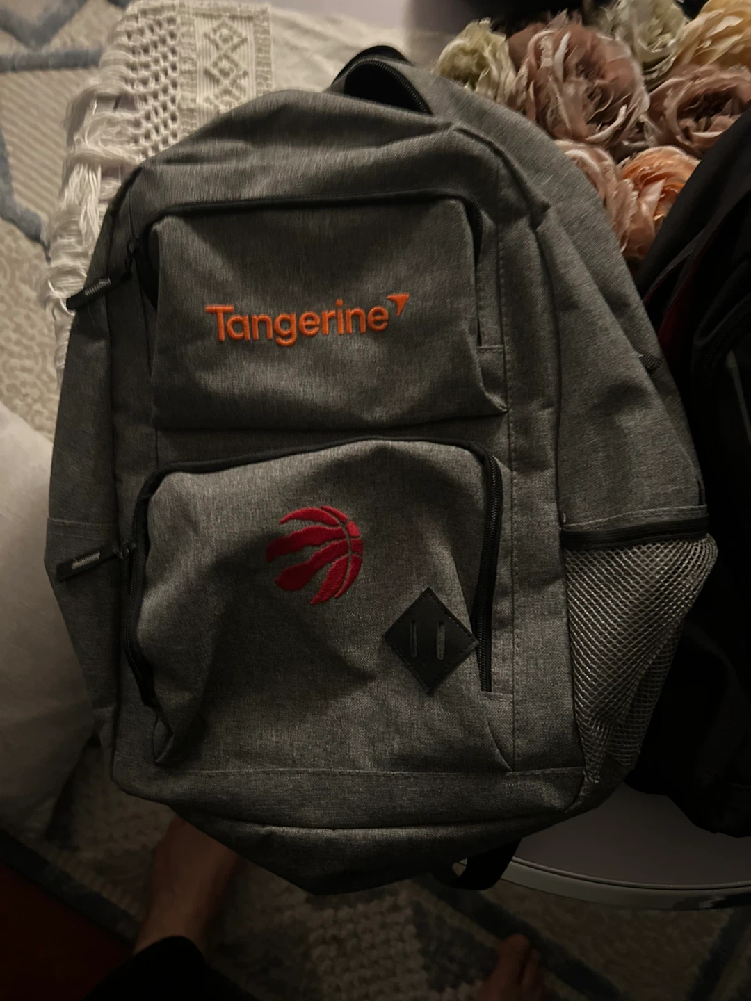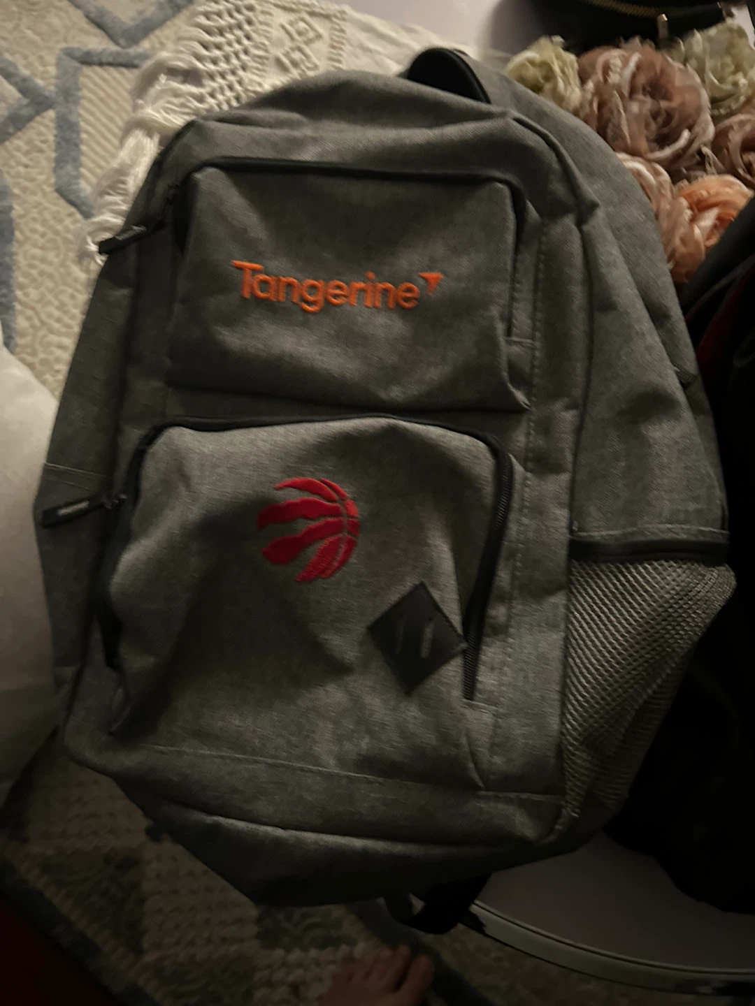 Selling a grey Tangerine backpack featuring the Toronto Raptors logo. It's in great shape and ready for a new owner! Perfect for school, work, laptop travel, or just showing off your Raptors pride