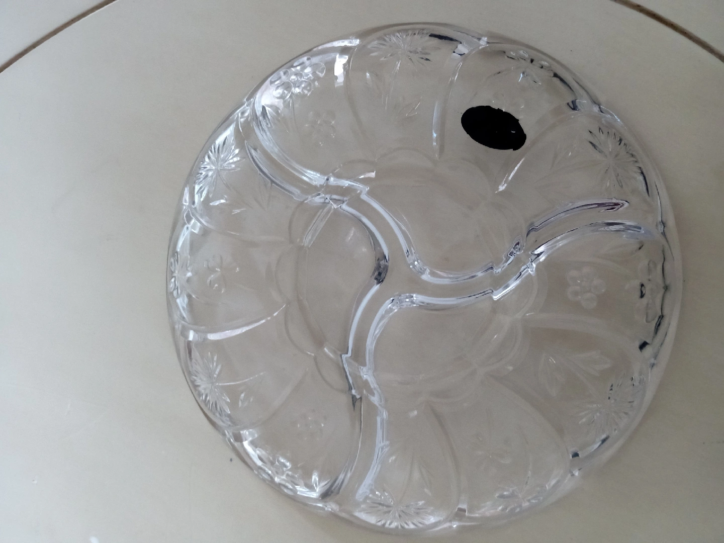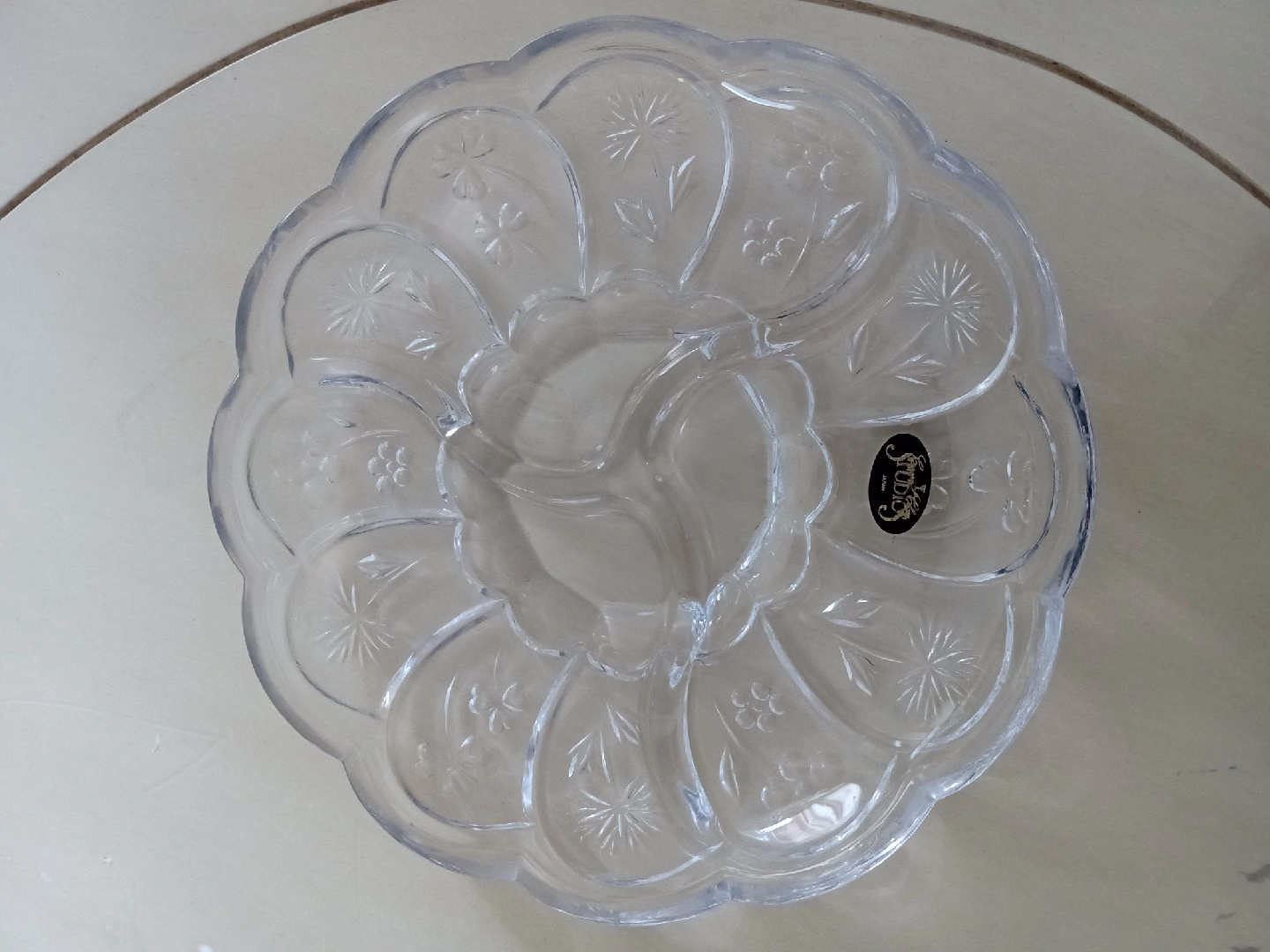 Selling a lovely divided serving dish from Crystal Studios Japan! It's perfect for serving snacks, appetizers, or desserts. The clear glass design is elegant and would look great on any table Pickup or Delivery (extra) Asking $15