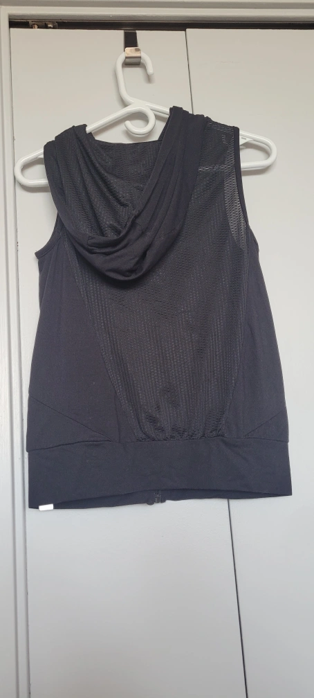 281This black vest hoodie from Move Activewear is perfect for workouts or casual wear! It's a size XS and made of 86% polyester and 14% spandex, making it comfortable and stretchy. It features a full zipper and a hood, perfect for those cooler days! Won't lie - It's old, but it's quality. You don't really see these anymore. I usually wear a size XS. Reason for selling: Coming from a clean smoke-free, pest-free, pet-free home. Available to meet around Bathurst & Sheppard, Vaughan Mills or around Finch & Yonge. Spend $15, $5 off. Cash Only!!