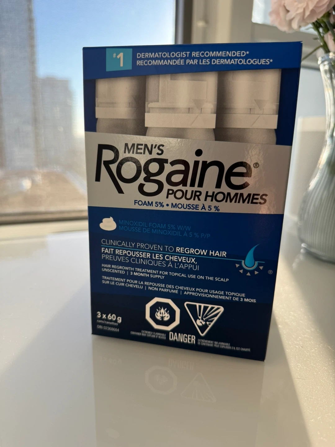 I'm selling a brand new box of Men's Rogaine Hair Regrowth Foam. It contains 3 x 60g cans of 5% minoxidil foam. The expiration date is November 2025, so you have plenty of time to use it. Dermatologist recommended to regrow hair!
