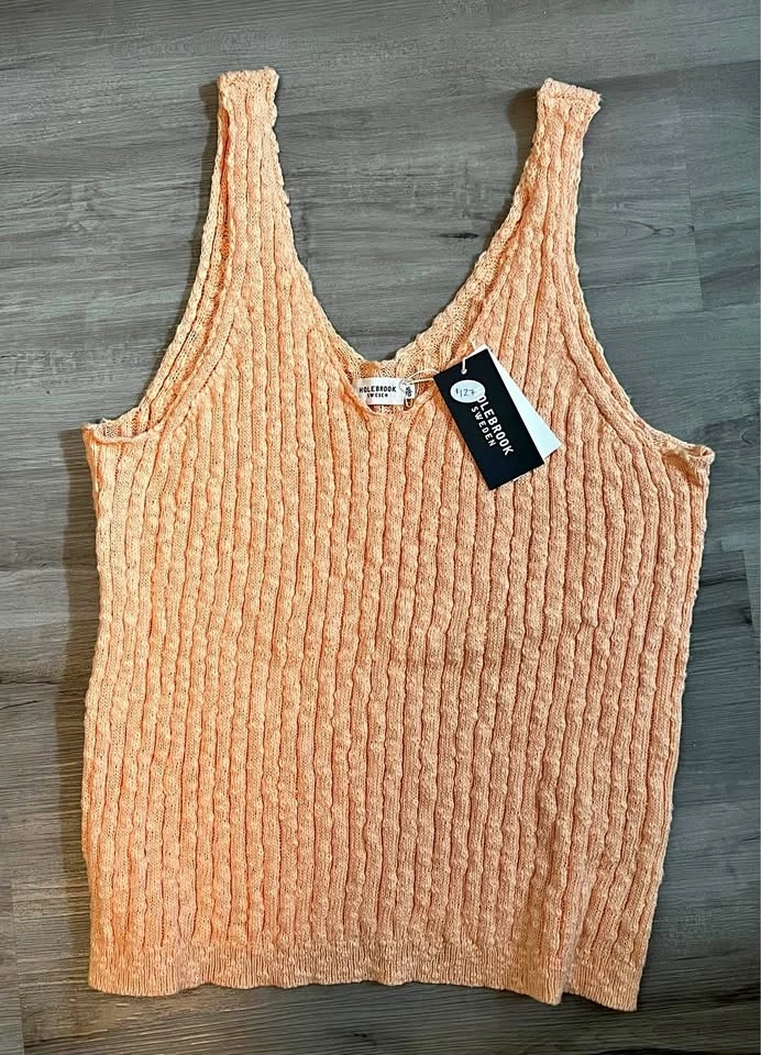 Brand new with tags, originally $127 plus tax. Received as a gift but it's not my style. Lovely apricot colour, great for spring/summer. This is a rib-knitted top in a slub quality made of 100% cotton, with a V-neck at both the front and back. Pick up in Esquimalt near Wholesale Club.
