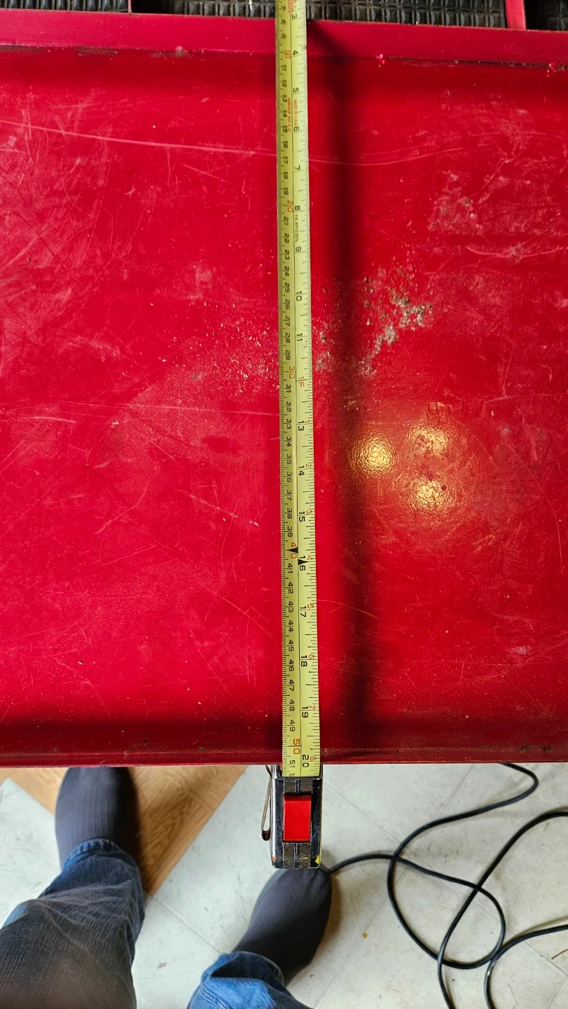 This is a red metal rolling work table. It's ideal for mechanics or anyone needing a stable surface for tools and parts. The table surface measures approximately 36" X 20"X 1 1/2 "call or text me or email at dugki9@hotmail.com thanks sincerely Douglas