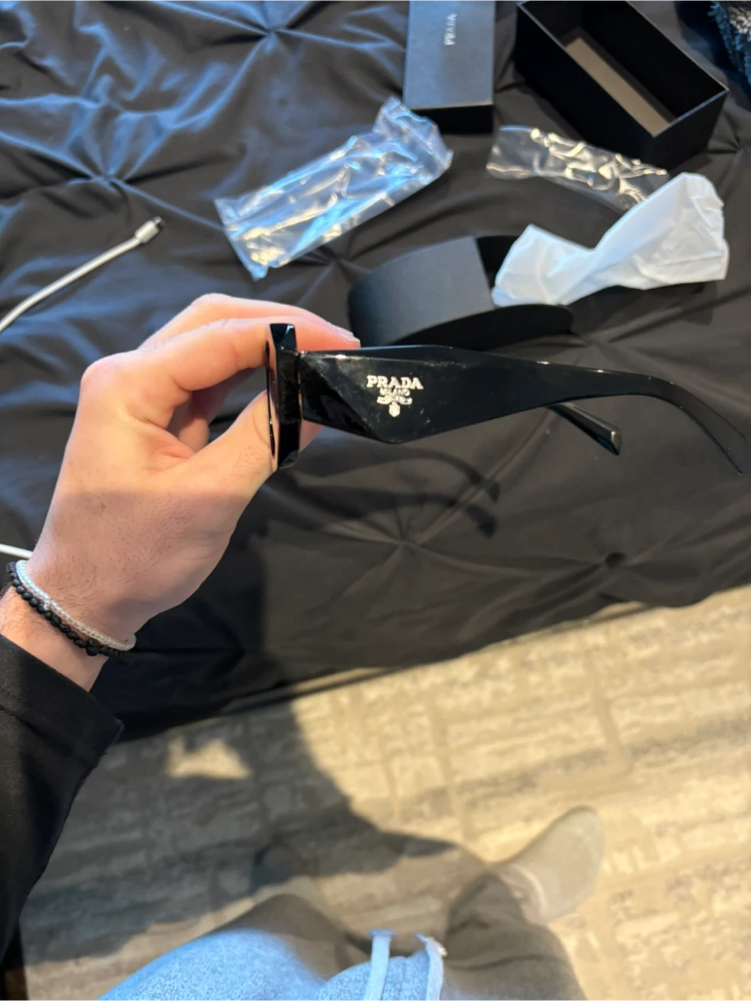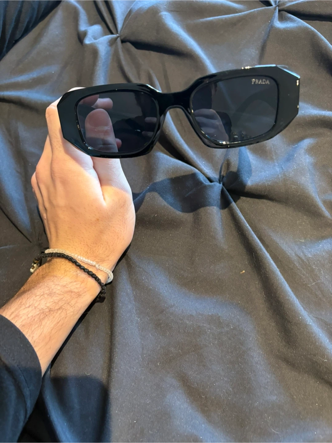 Prada sunglasses in a stylish black finish. Comes with its original Prada case for protection. These shades are made for sunny days!