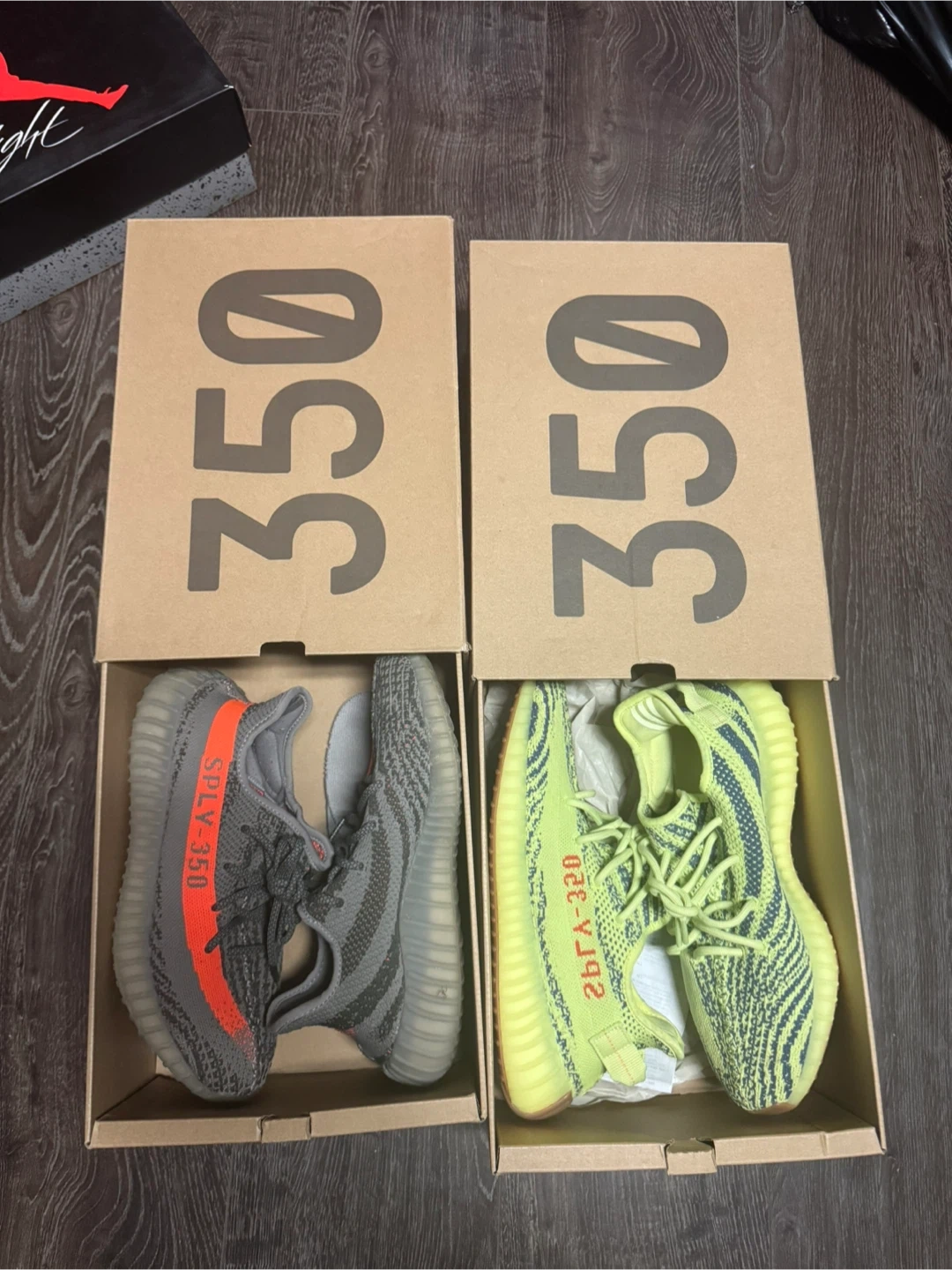 Selling two pairs of Adidas Yeezy Boost 350 sneakers. Both come with their original boxes.