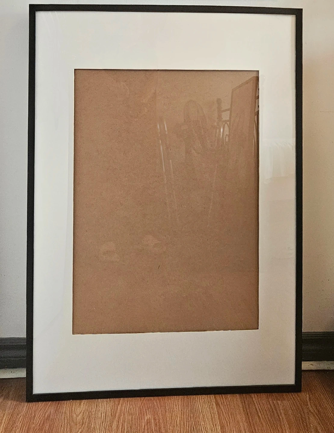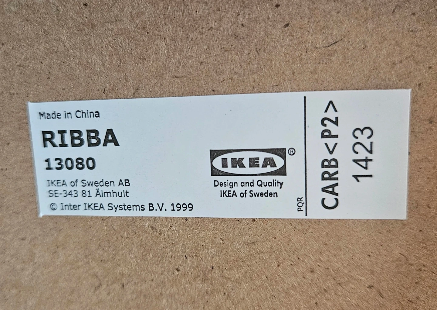 IKEA RIBBA picture frame in black. It's made in China and designed in Sweden. This frame holds photos and artwork for display.