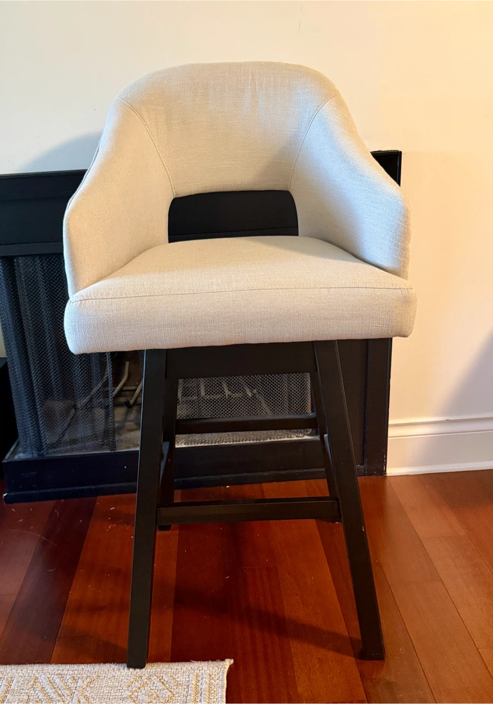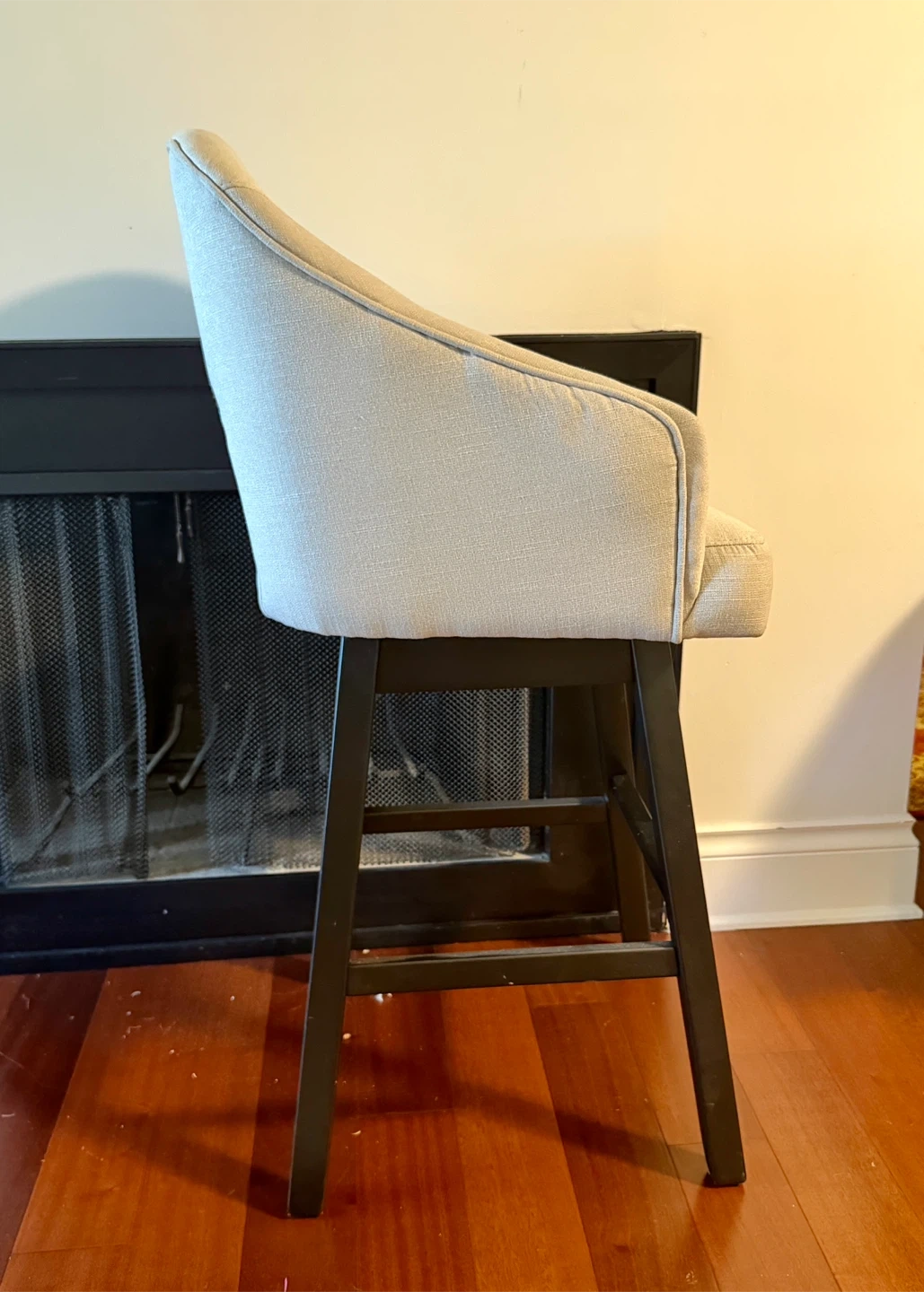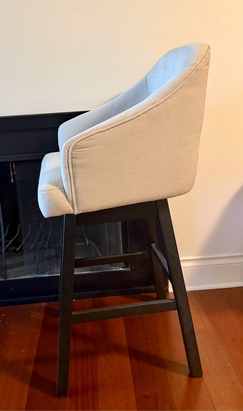 The Tallenger barstool invites you to take contemporary modern style for a spin. Comfortably cushioned seat, self-returning swivel and contoured back make it beautifully in tune with your needs. Luxurious linen-look upholstery is a sensational touch.