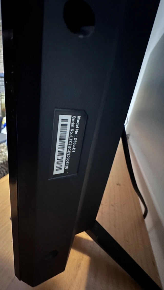 Works very well. There is an extremely small chip in the screen ( see second photo). It’s the size of a pixel and barely noticeable. Comes with remote and cord. Pickup in Scarborough