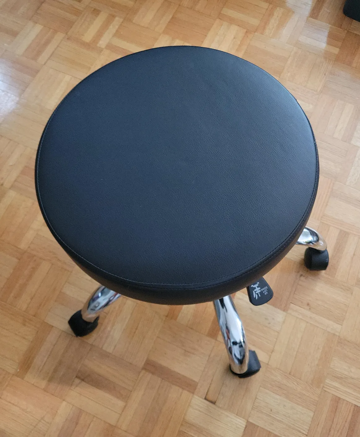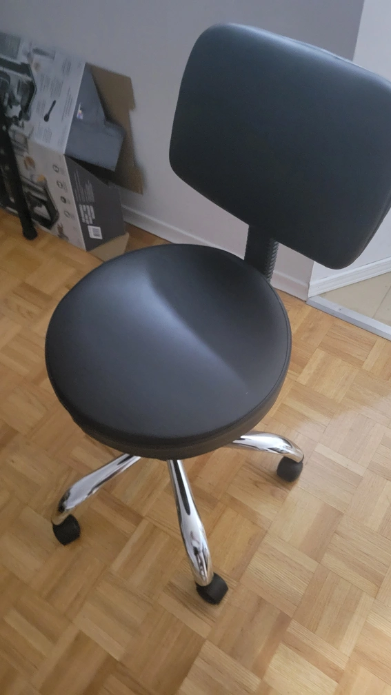 Here's a comfy black swivel stool with a backrest! It's perfect for a home office, craft room, or anywhere you need a little extra seating. The height is adjustable so you can find the perfect fit for your desk or table. It's in great shape and ready for a new home
