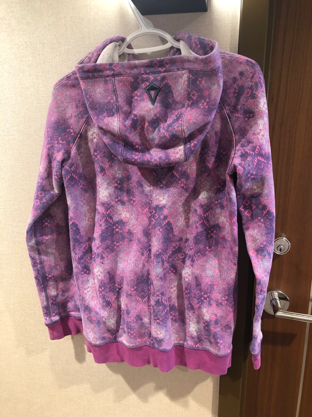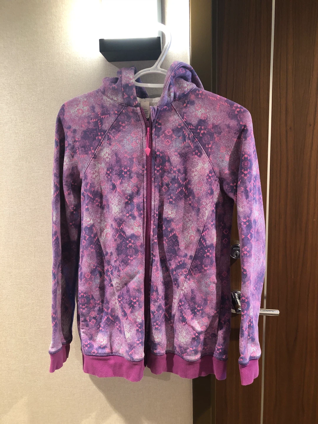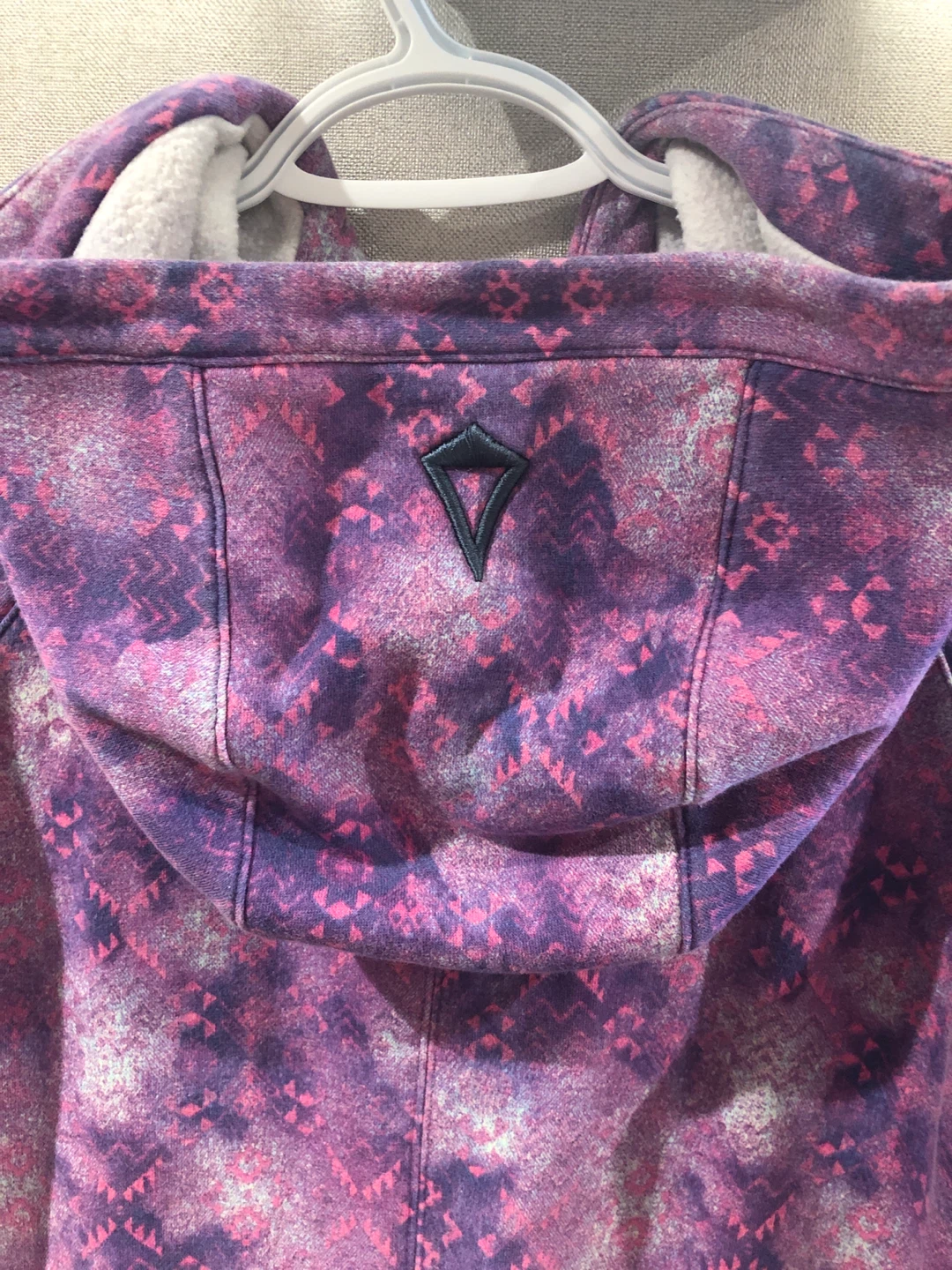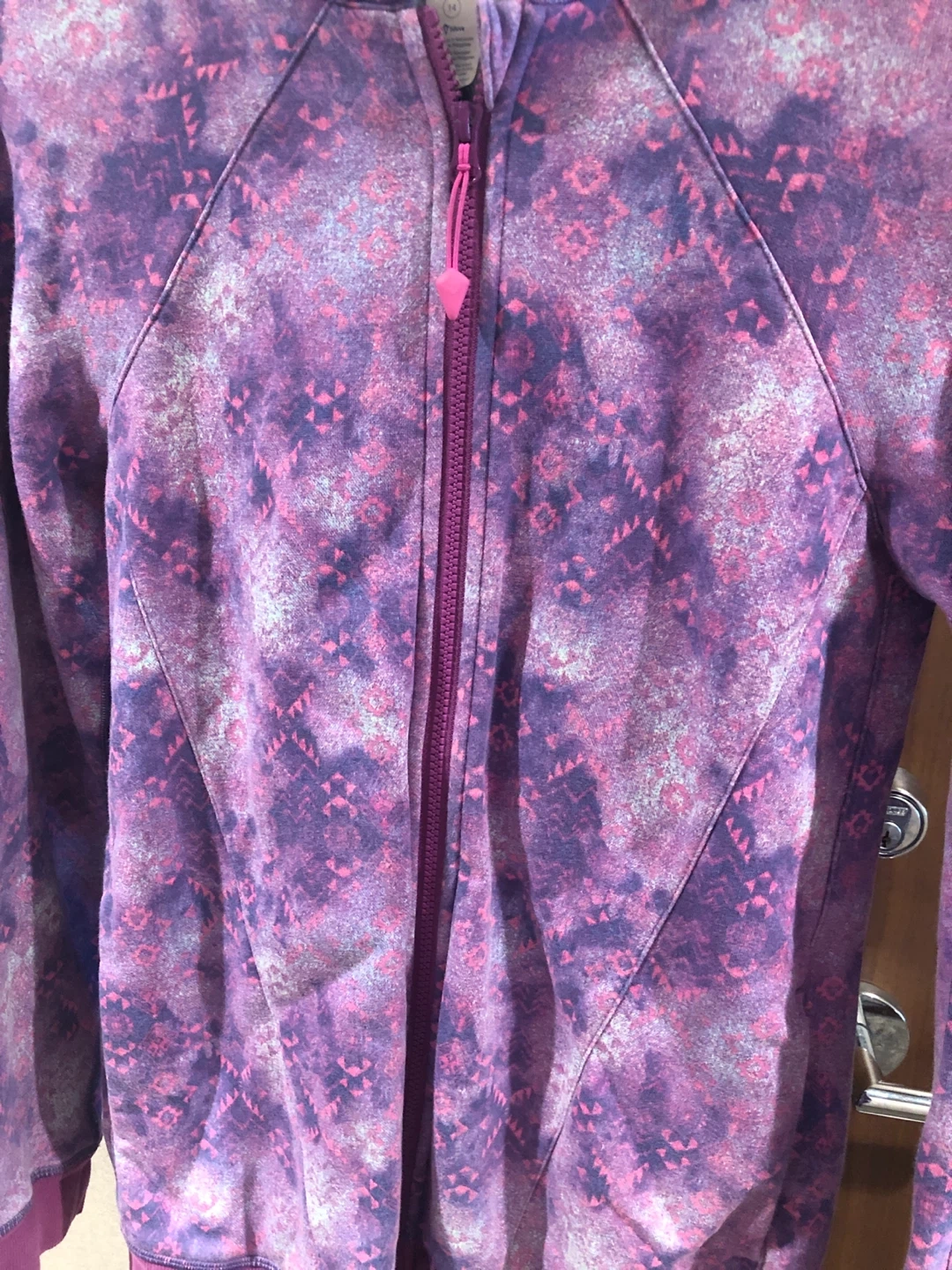 Selling a cute Ivivva girls' hoodie in a lovely purple colour! It's size 14 and features a unique pattern. Perfect for keeping warm and stylish!