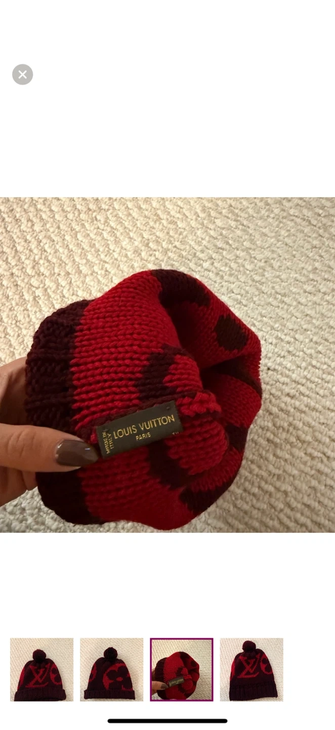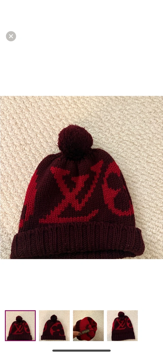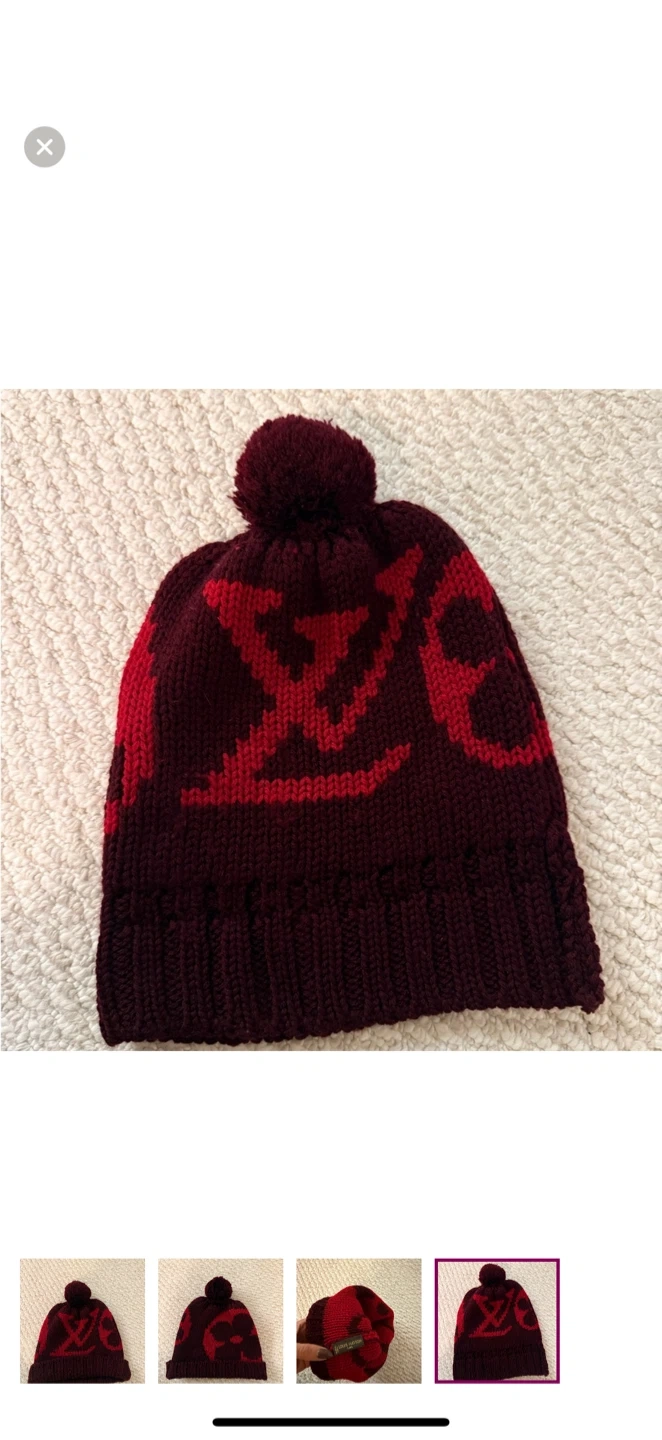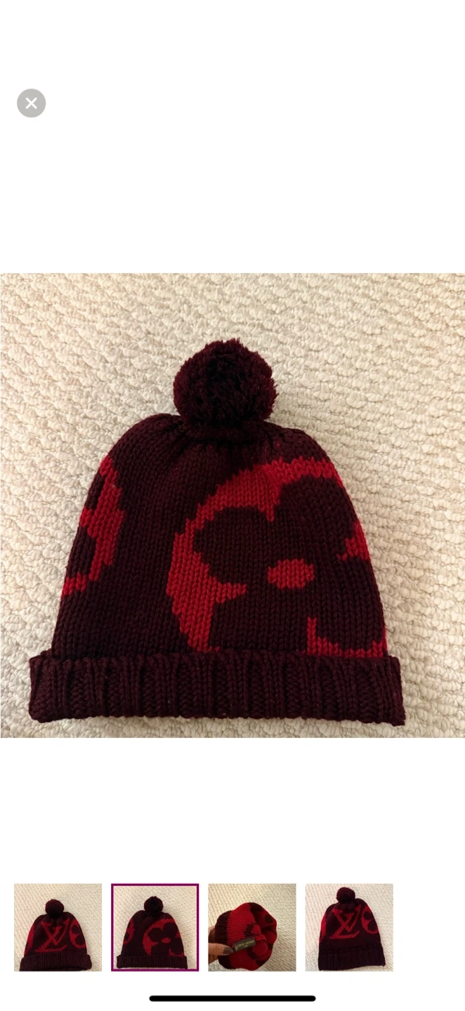 Selling a Louis Vuitton wool beanie in excellent condition! It features a stylish red and burgundy design. Perfect for keeping warm and adding a touch of luxury to your winter wardrobe