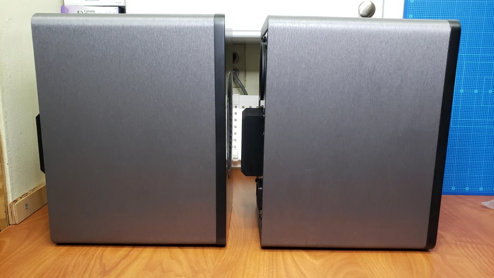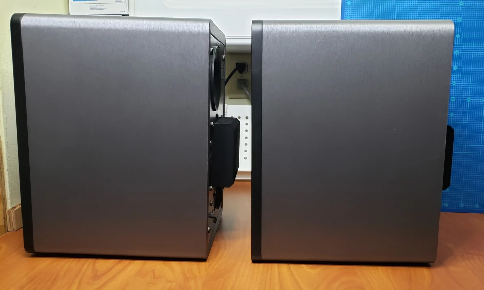 Balance switch on the back of the master speaker allows you to optimize the sound, whether you place the speaker on the desk, against a wall or in free space