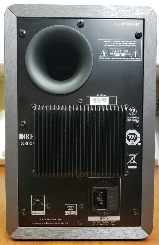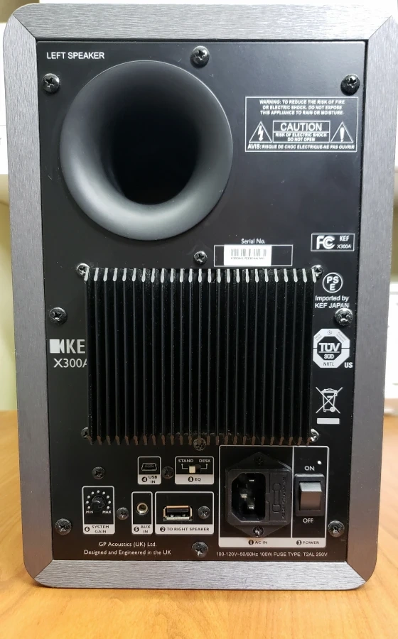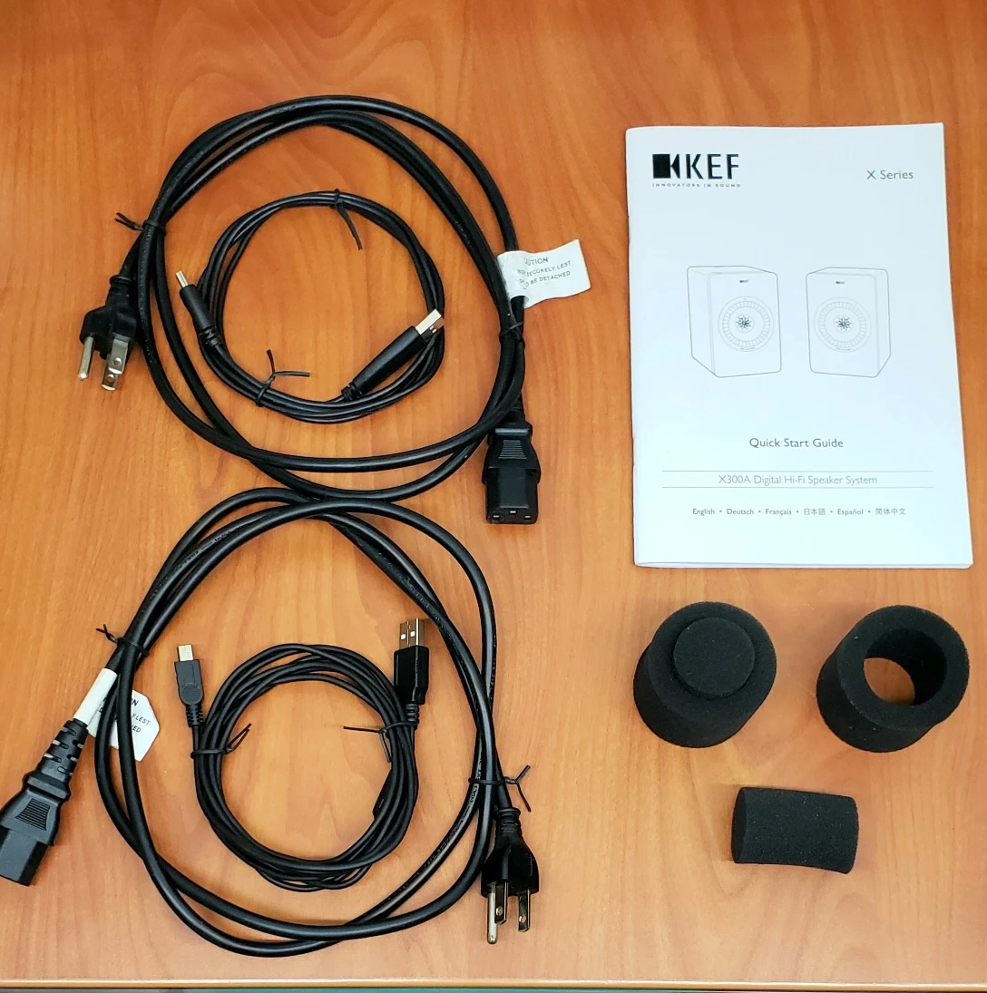 KEF X300A wired, 1st Generation powered digital speakers. Purchased new approx. 6 years ago. They were rarely used and have less than 100 hours of light to medium volume usage time.