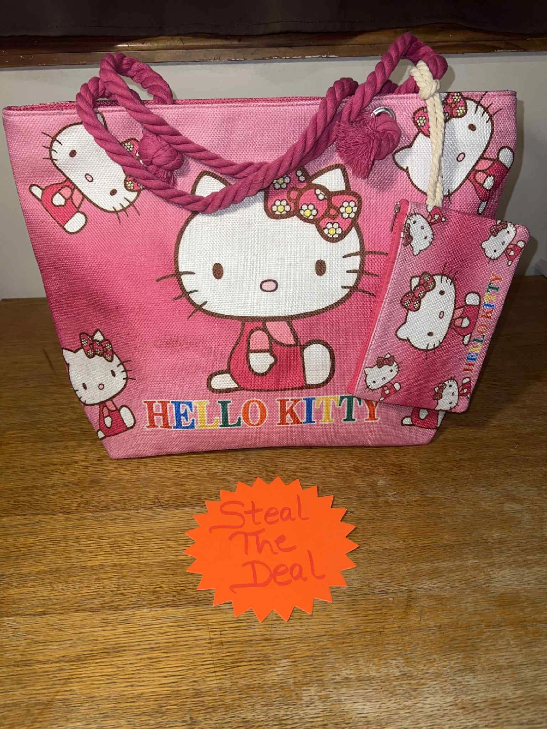 75Super cute Hello Kitty pink tote bag! It comes with a matching small purse. Perfect for carrying your essentials in style NEW IN BAG