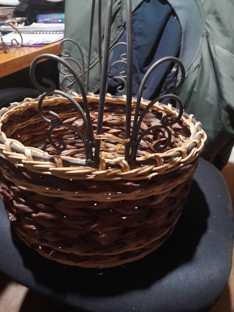 Selling a woven basket with a decorative metal handle. It's in great shape and would look lovely with plants or as a decorative piece in your home! The basket is made in the Philippines.