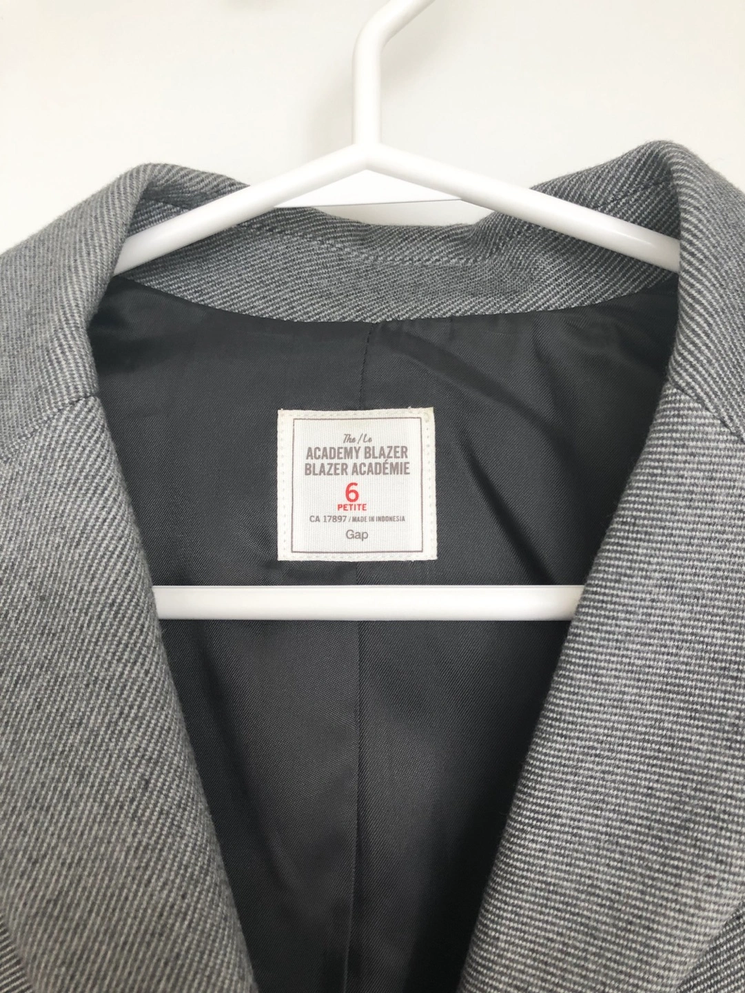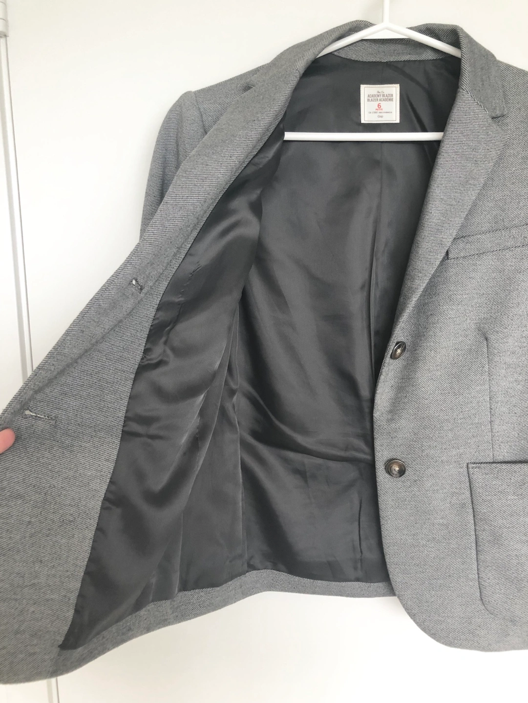 The Academy Blazer in grey by the Gap in size 6 petite. My favourite and lucky interview blazer! Have come to terms that the fit is a little off for me since it’s petite.