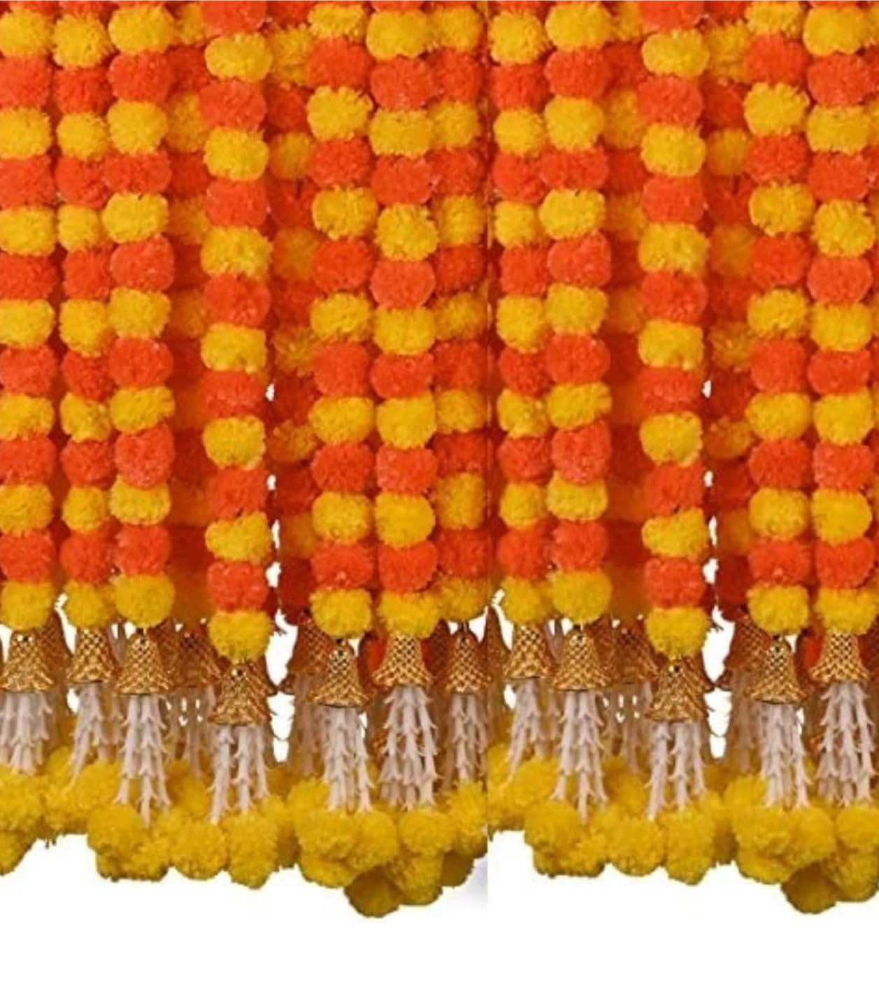 Brighten up your celebrations with these vibrant marigold flower garlands! Perfect for Indian weddings, Diwali, or any festive occasion, these garlands add a touch of traditional charm. The cheerful yellow and orange hues create a warm and inviting atmosphere. They're great for decorating doorways, walls, or creating stunning backdrops