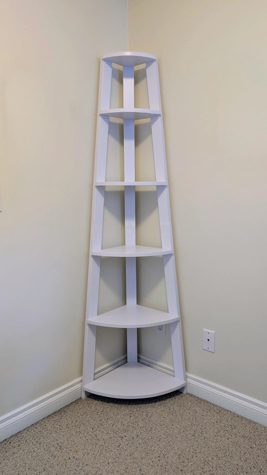Bring both style and function to your space with this white corner shelf. With five tiers, it’s perfect for books, plants, or décor.