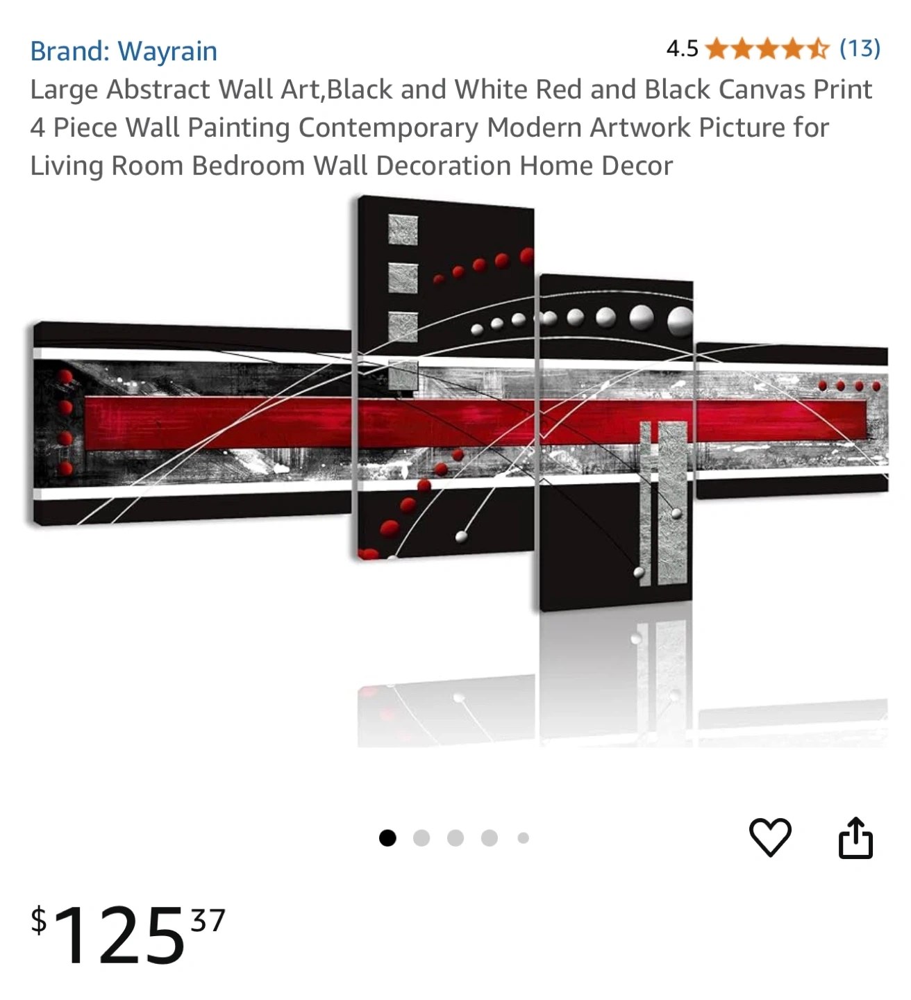 Selling a large abstract wall art piece by Wayrain. It features a black, white, and red canvas print, perfect for adding a contemporary touch to your living room or bedroom decor. Originally bought for $125.37